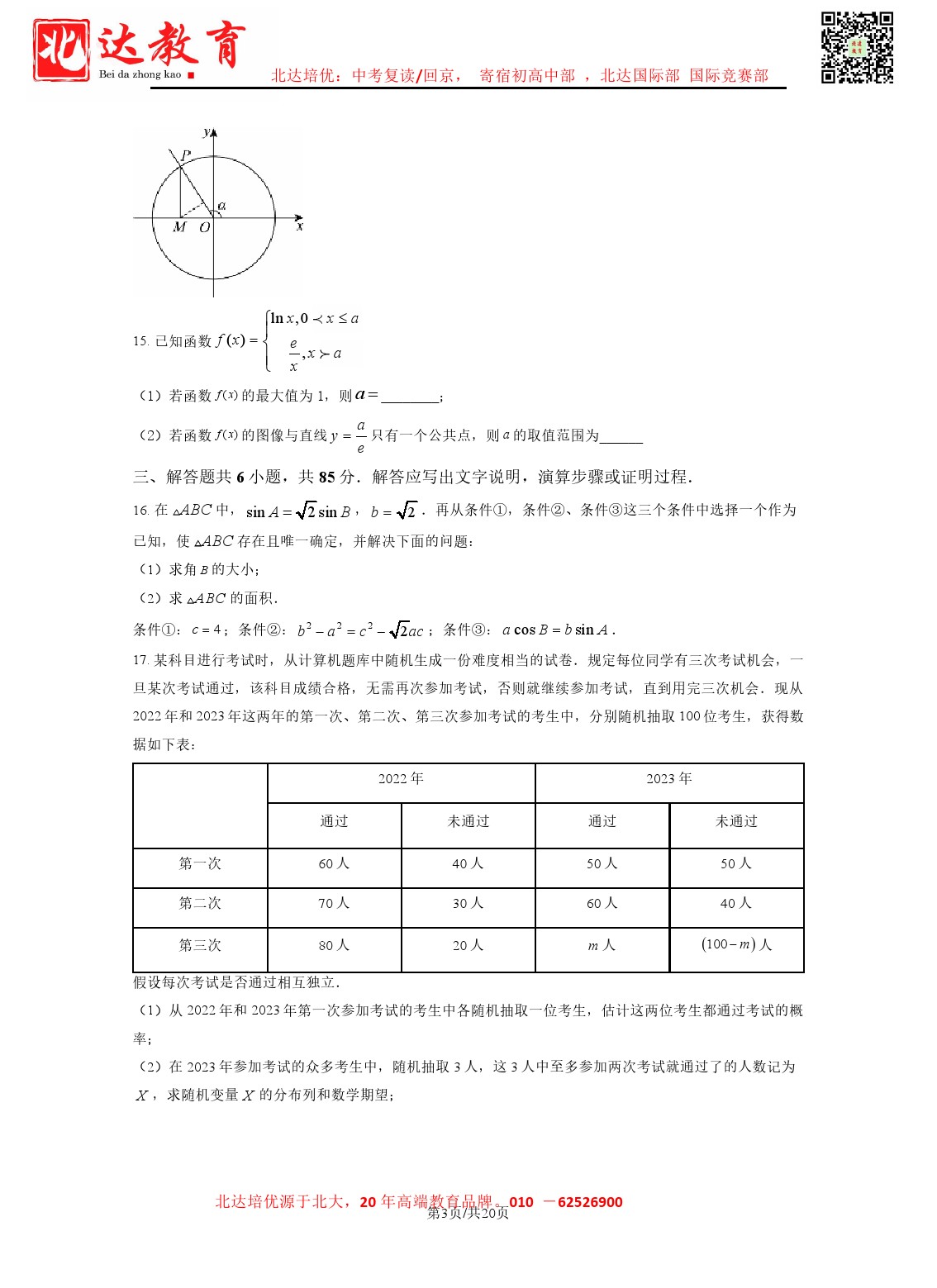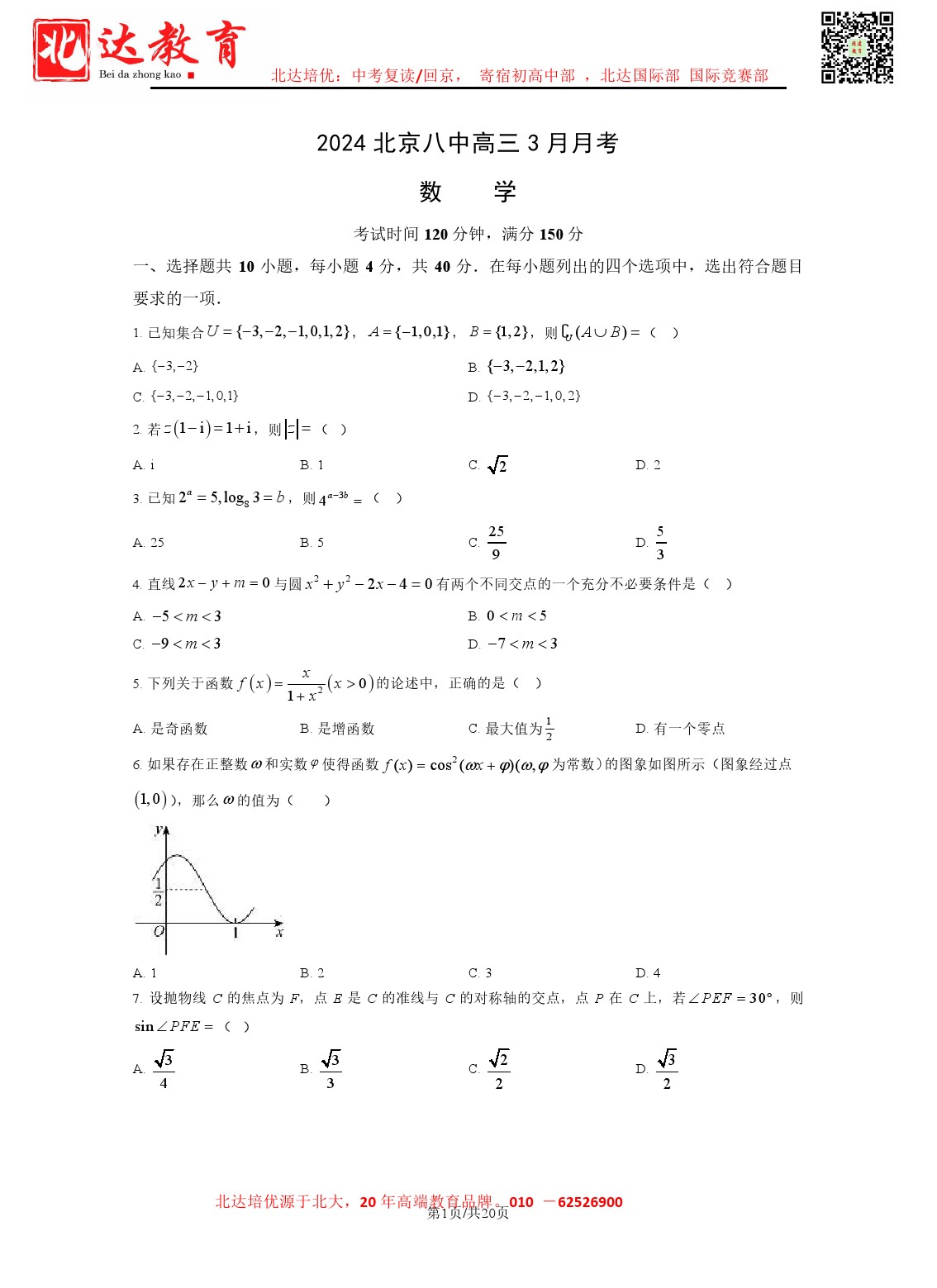 admw360教育整理了2024年3月北京八中高三月考数学试题及答案解析,分享给同学们。