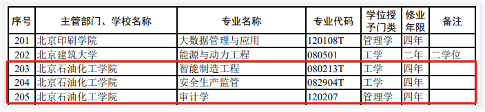 教育部公布了普通高等学校本科专业备案和审批结果,北京石油化工学院智能制造工程、安全生产监管、审计学等三个专业成功获批。这些专业将在2024年首次招生。admw360教研组收集并整理信息如下: