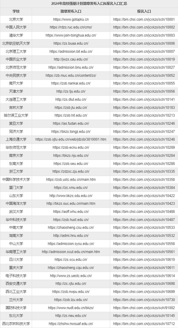 2024年39所高校强基计划简章发布入口&报名入口汇总