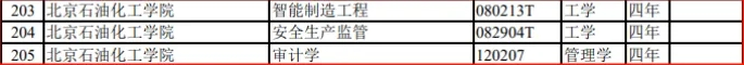 北京石油化工学院智能制造工程、安全生产监管、审计学等三个专业成功获批。这些专业将在2024年首次招生。