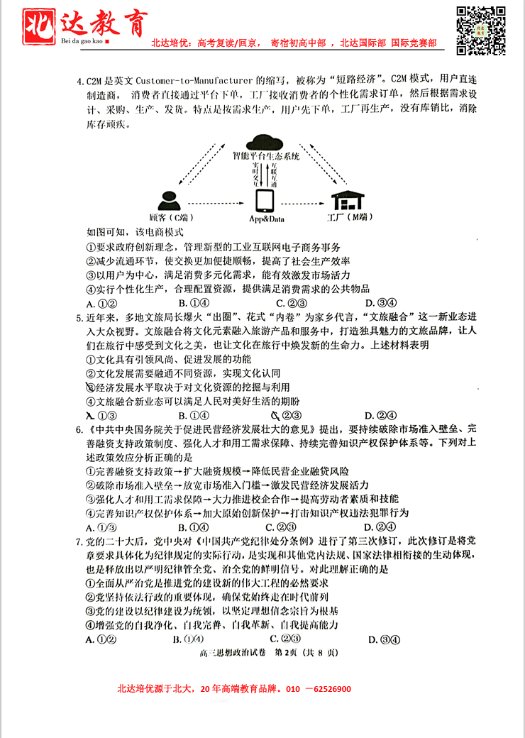 2024年北京门头沟高三一模开考,admw360教研组收集并整理了2024北京门头沟高三一模政治试题及答案,分享给同学们。