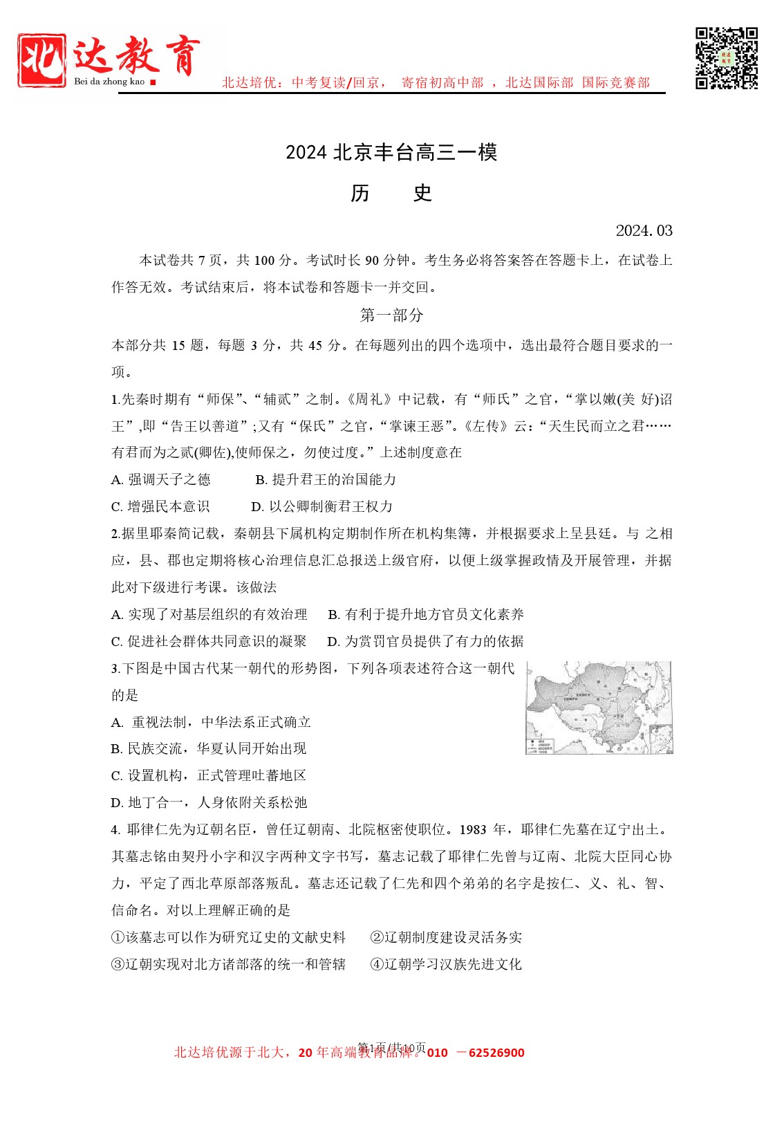 2024年北京丰台区高三一模开考,admw360教研组收集并整理了2024北京丰台区高三一模历史试卷含答案,分享给同学们。