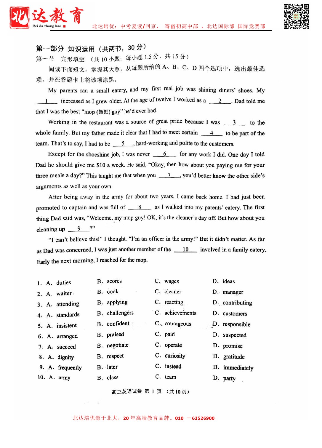 2024年北京石景山区高三一模开考,admw360教研组收集并整理了2024北京石景山区高三一模英语试卷,分享给同学们。 导读推荐:2024年北京各区高三一模汇总 北京admw360全日制学校:中高考…