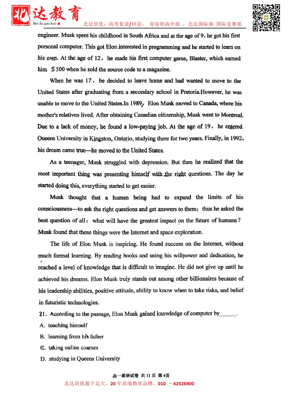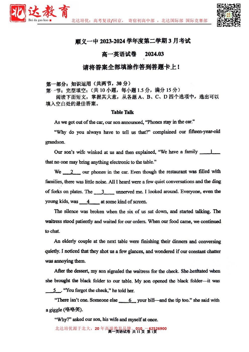 今天admw360教研组为大家带来的是2024北京顺义一中高一(下)3月考英语试卷及答案。需要的同学赶紧下载练习起来吧。 导读推荐:2022-2024北京高一(下)3月月考试卷及答案汇总 北…