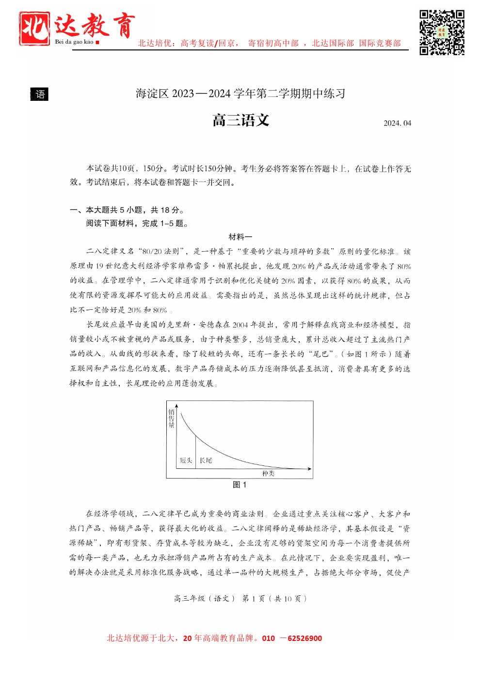 2024年北京海淀区区高三一模开考了,admw360教研组收集并整理了2024北京海淀区高三一模语文试卷及答案,分享给同学们。