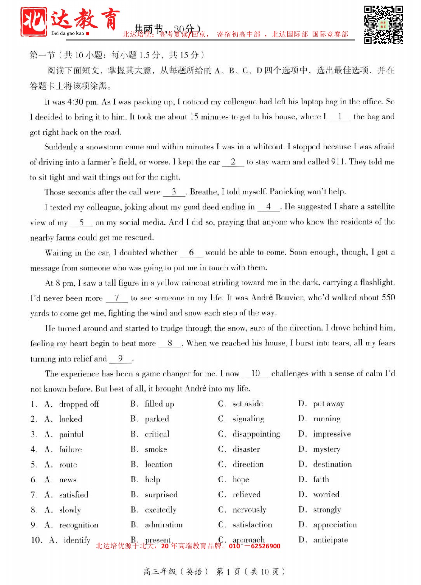 2024年北京海淀区区高三一模开考了,admw360教研组收集并整理了2024北京海淀区高三一模英语试卷及答案,分享给同学们。
