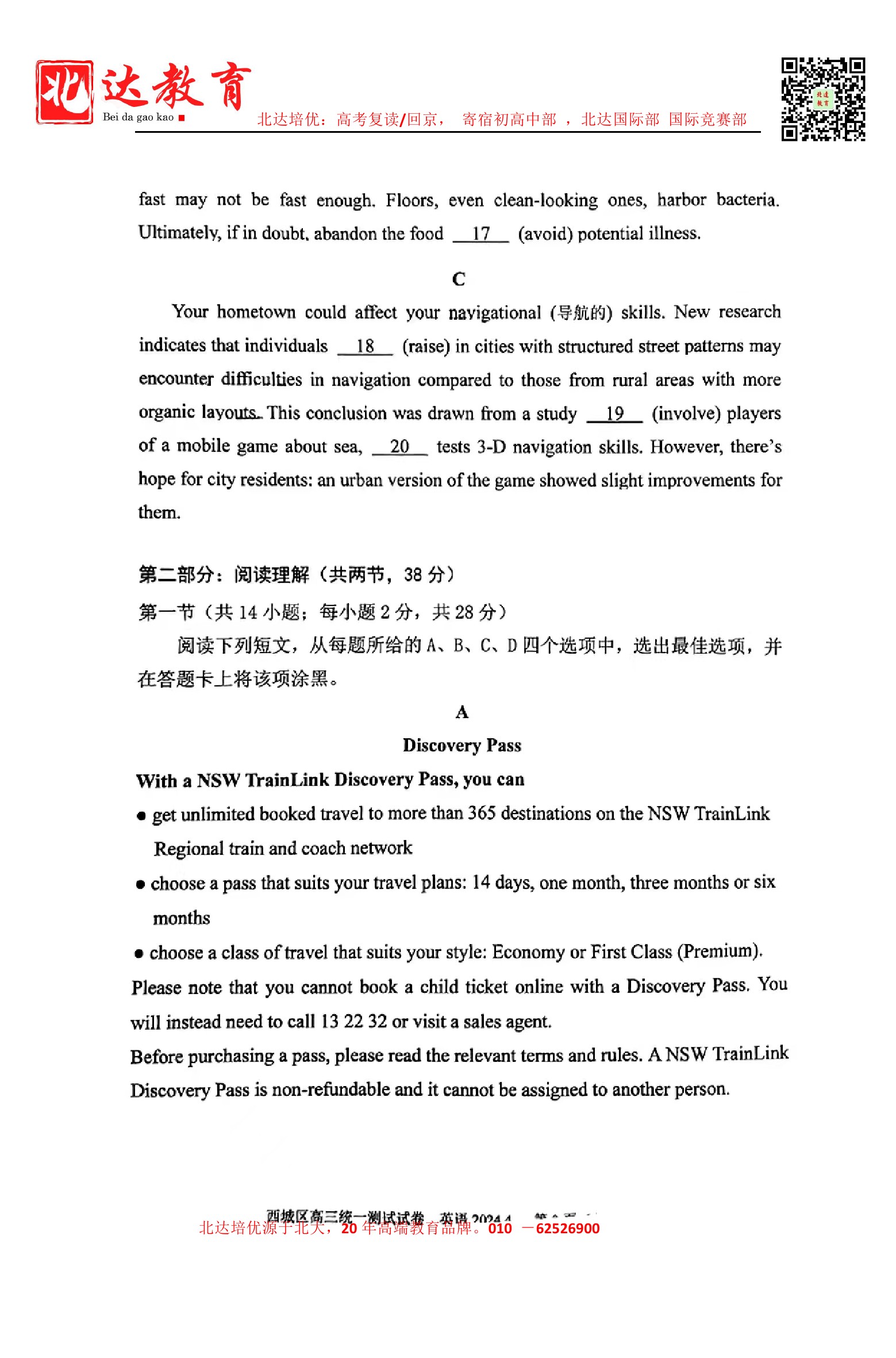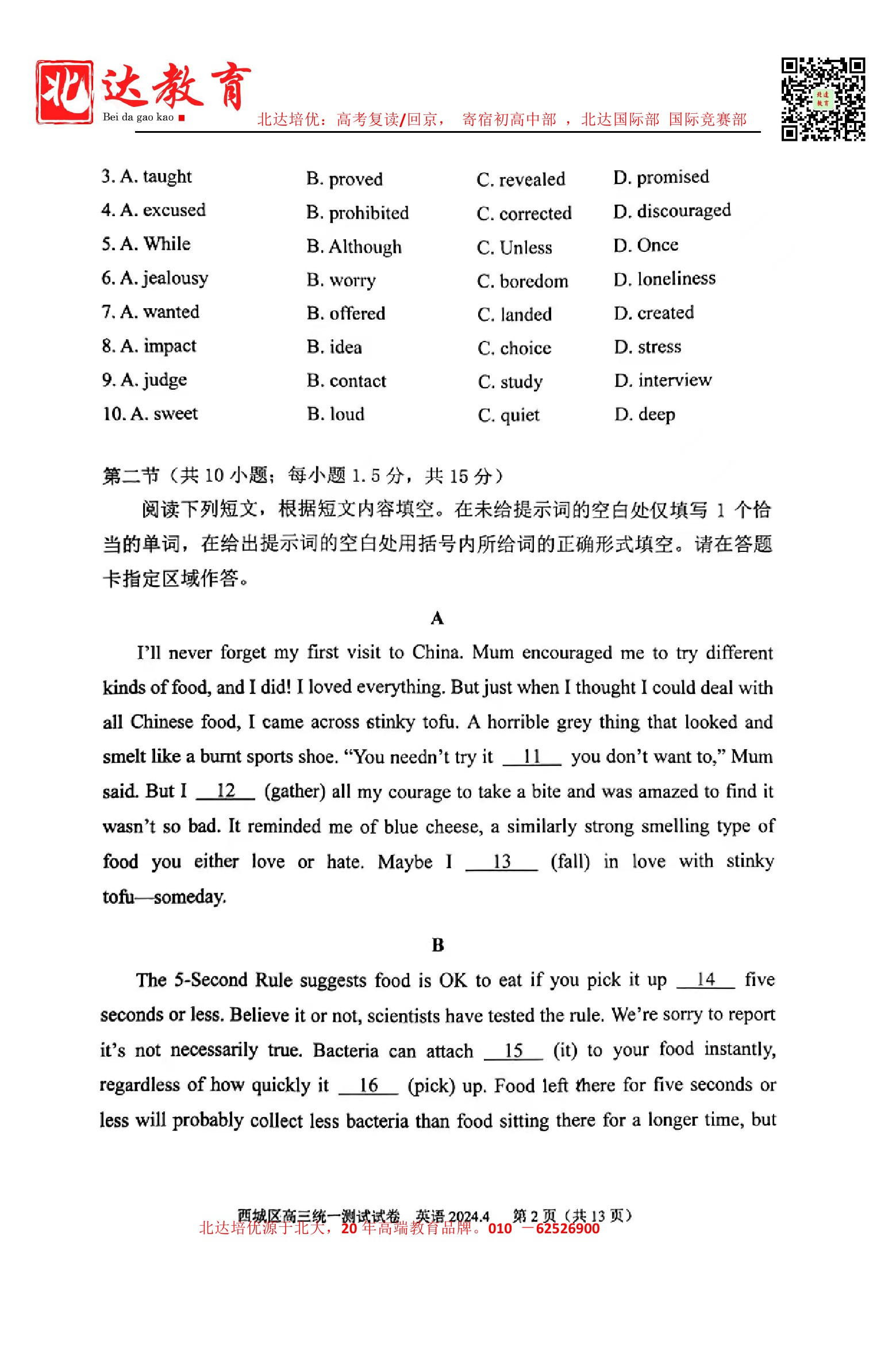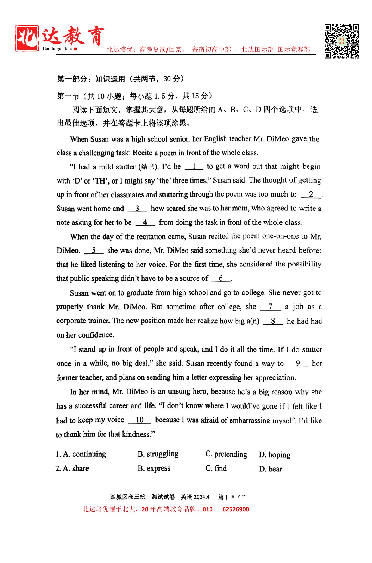 2024年北京西城区高三一模4月7日开考,admw360教研组收集并整理了2024北京西城区高三一模英语试卷及答案,分享给同学们。