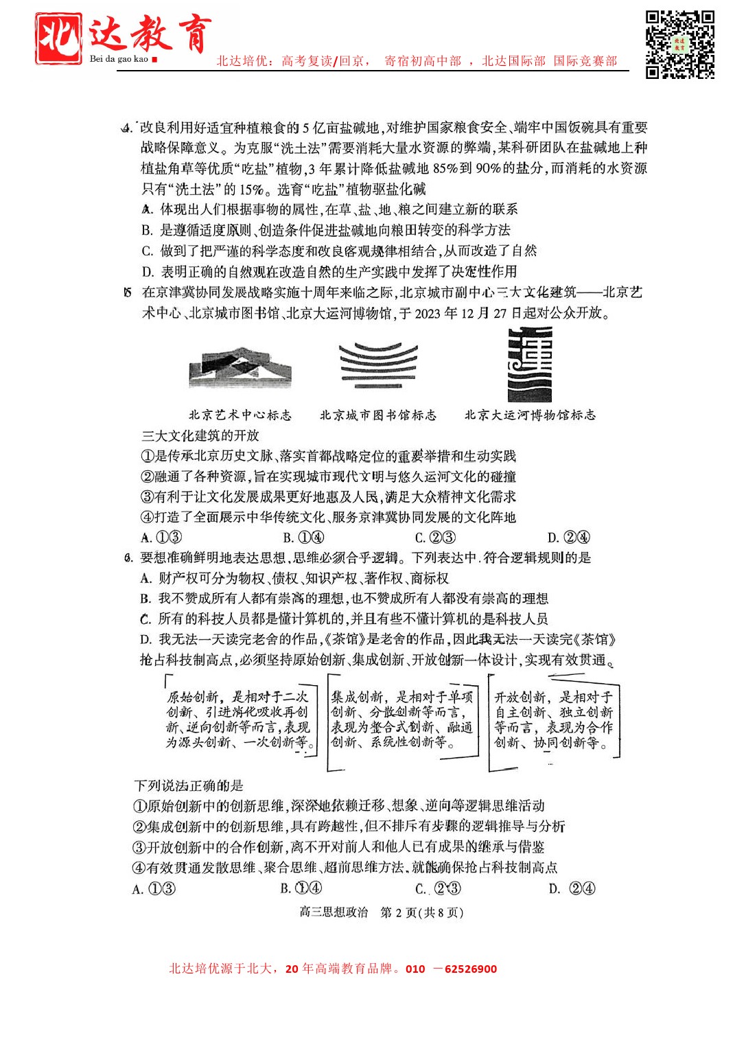2024年北京朝阳区高三一模4月7日开考,admw360教研组收集并整理了北京朝阳2024年高三一模政治试题及答案,分享给同学们。
