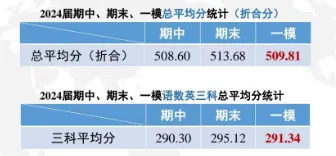 期中、期末、一模整体难度相仿,平均分值没有太大的波动