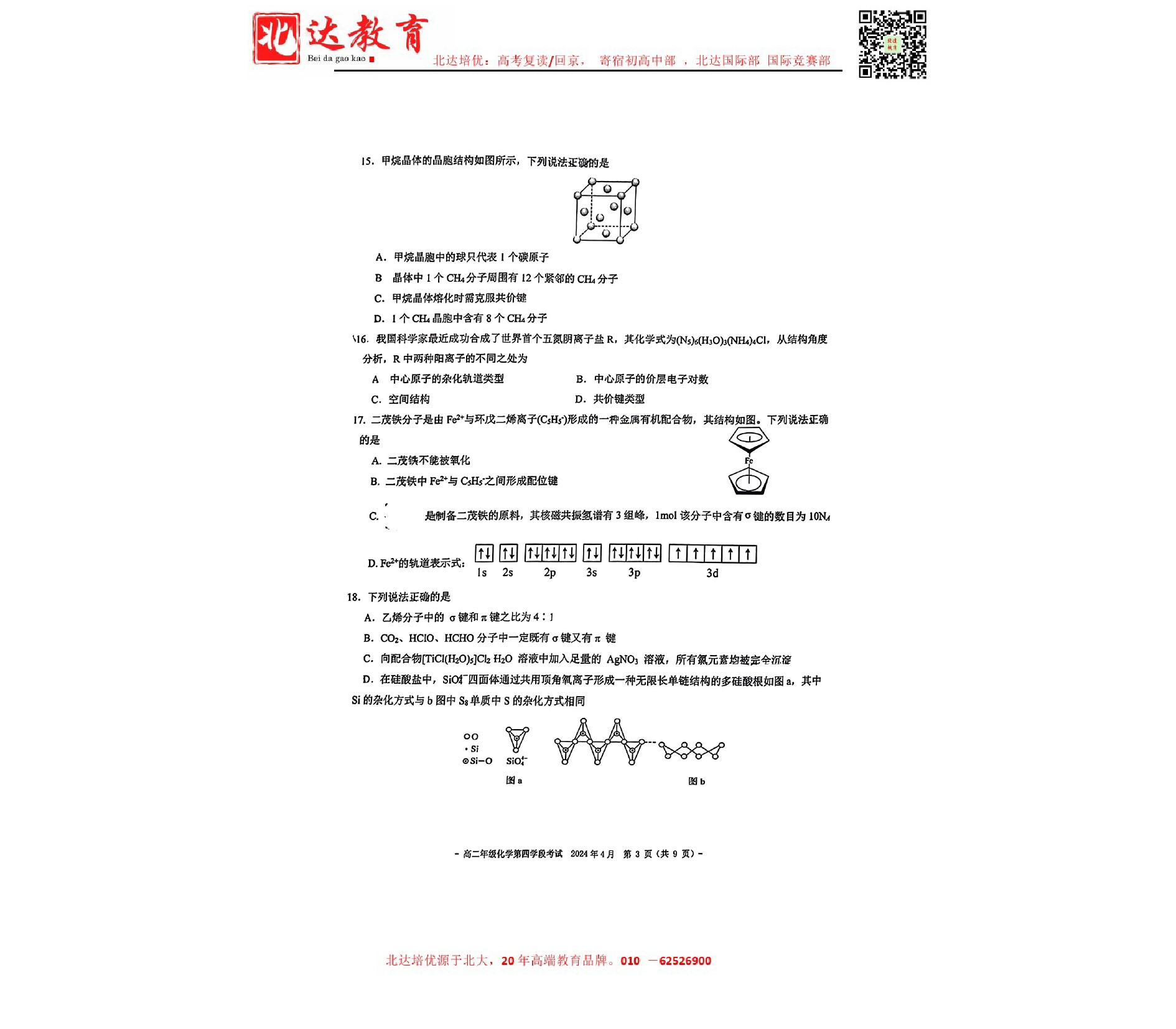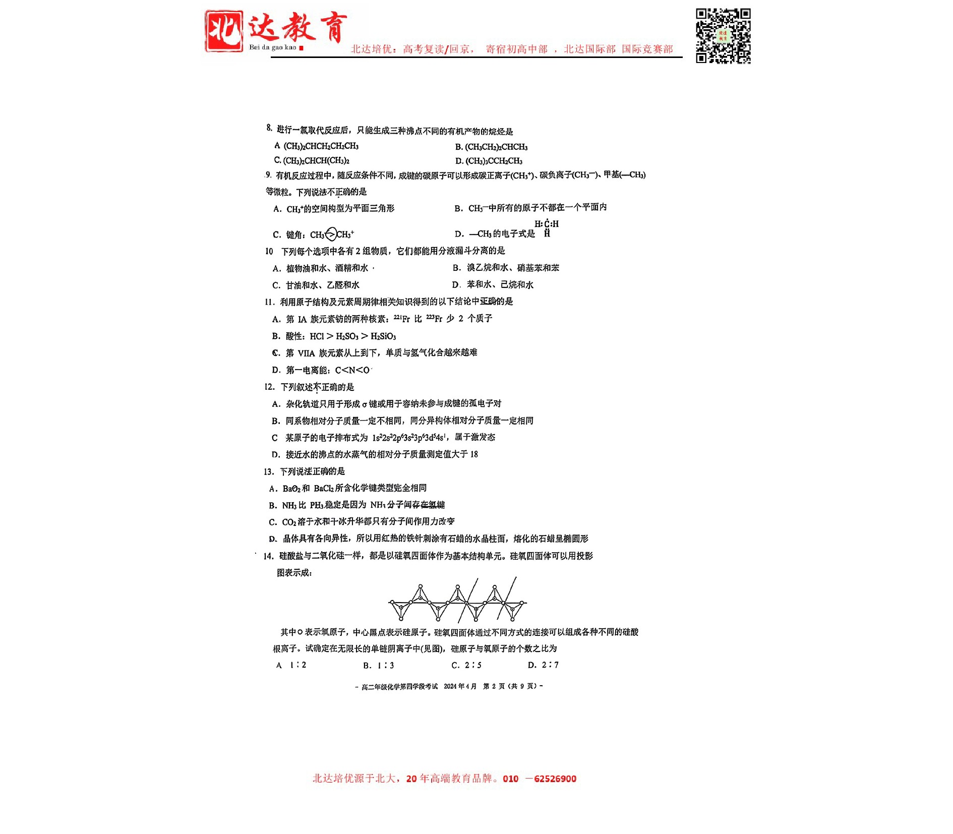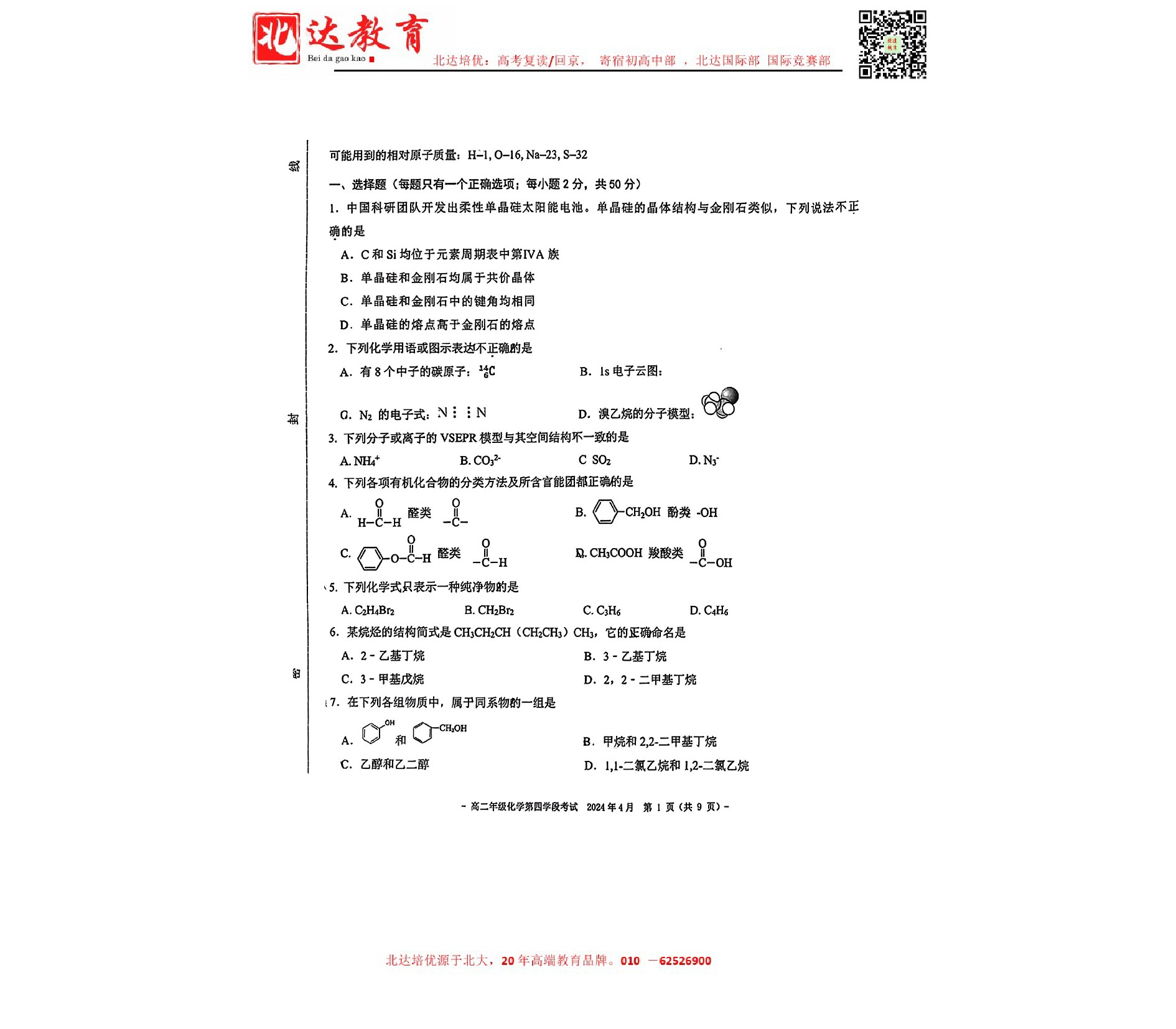 2024年北京东城区二中高二(下)期中开考,admw360教育整理了2024北京二中高二(下)期中化学试卷,分享给同学们。