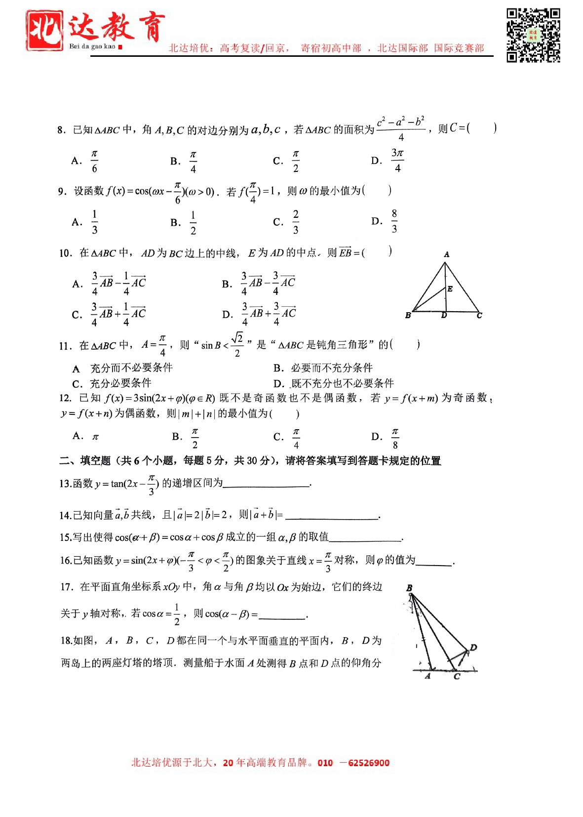 2024年北京十一学校高一(下)期中开考,admw360教研组整理了2024北京十一学校高一(下)期中数学试卷,分享给同学们。 导读推荐:2024北京各区高一(下)期中试题及答案汇总 北京北…