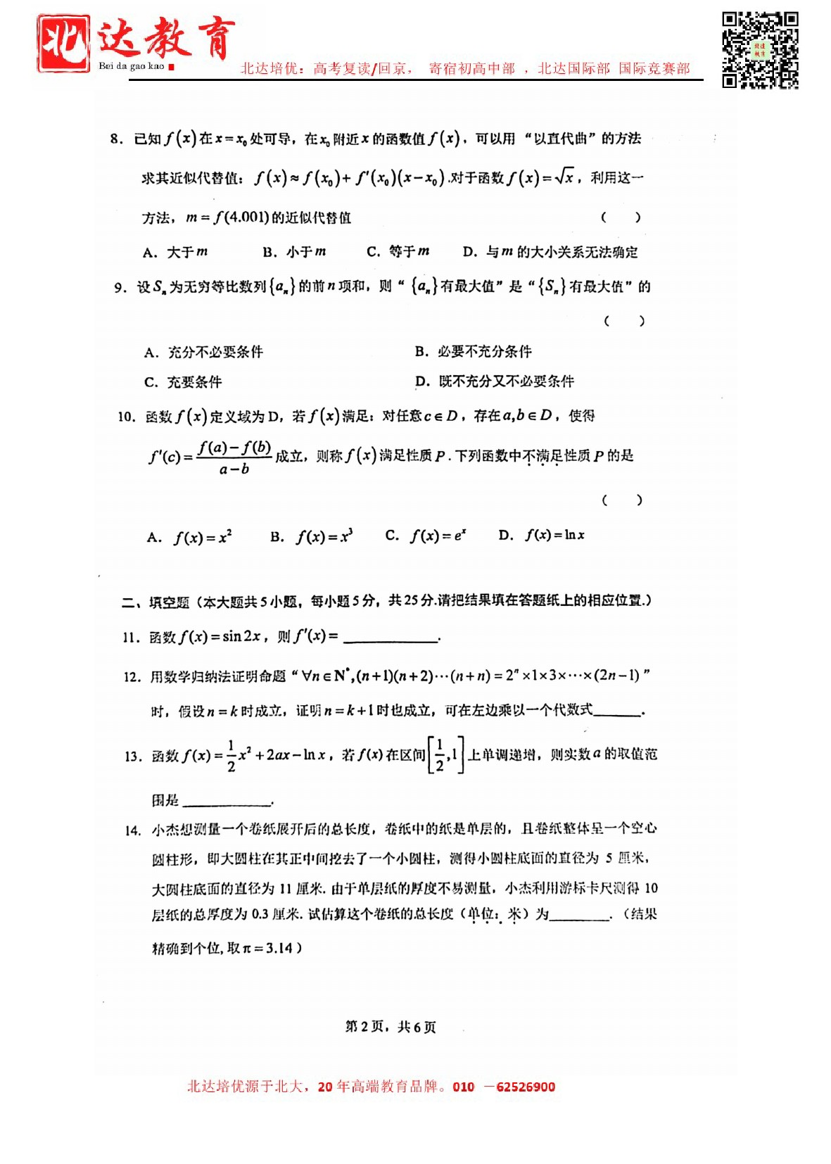 2024年北京人大附中高二(下)期中开考,admw360教育整理了2024北京人大附中高二(下)期中数学试卷,分享给同学们。