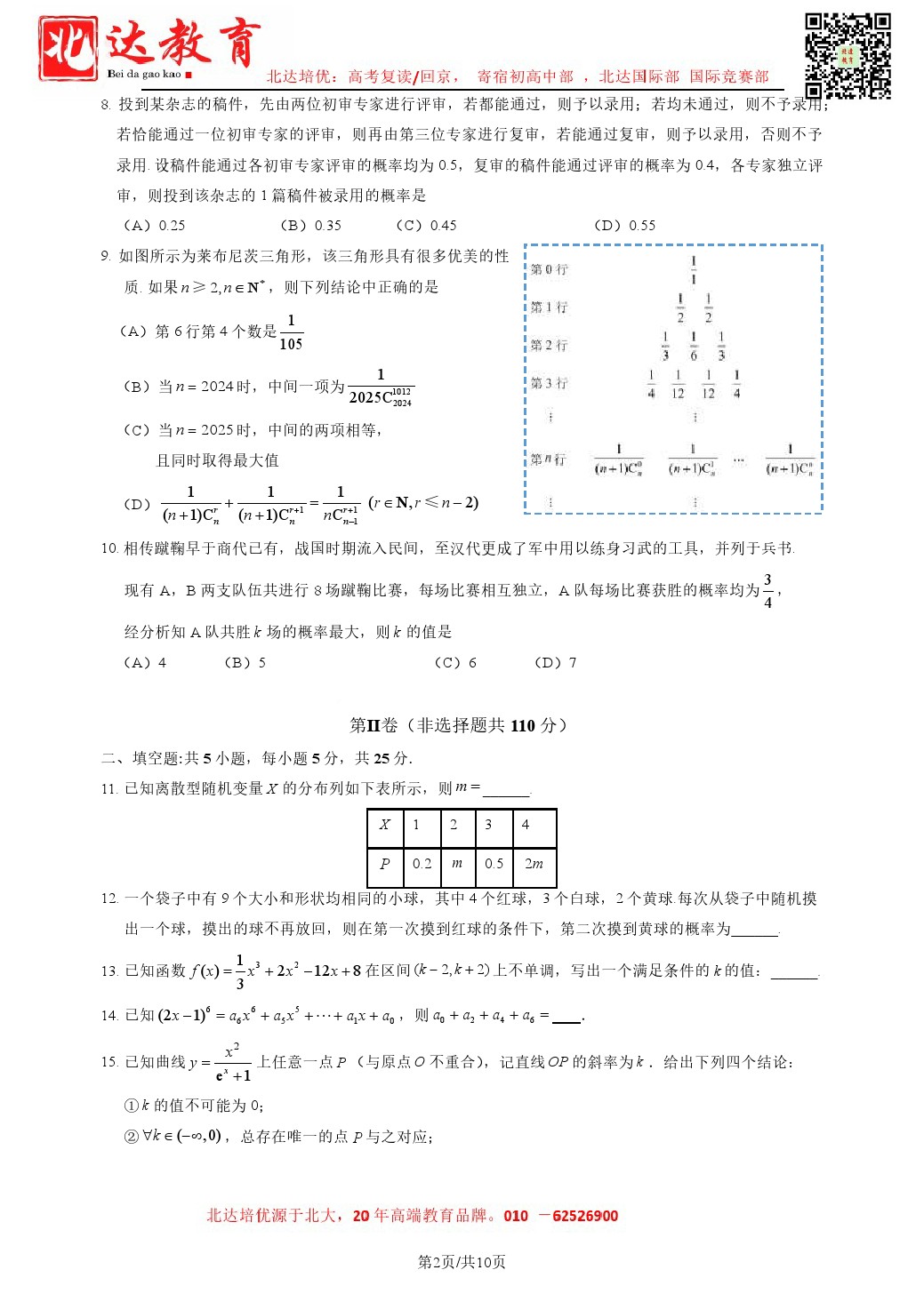 2024年北京丰台高二(下)期中开考,admw360教育整理了2024北京丰台高二(下)期中数学(A卷)试卷含答案,分享给同学们。