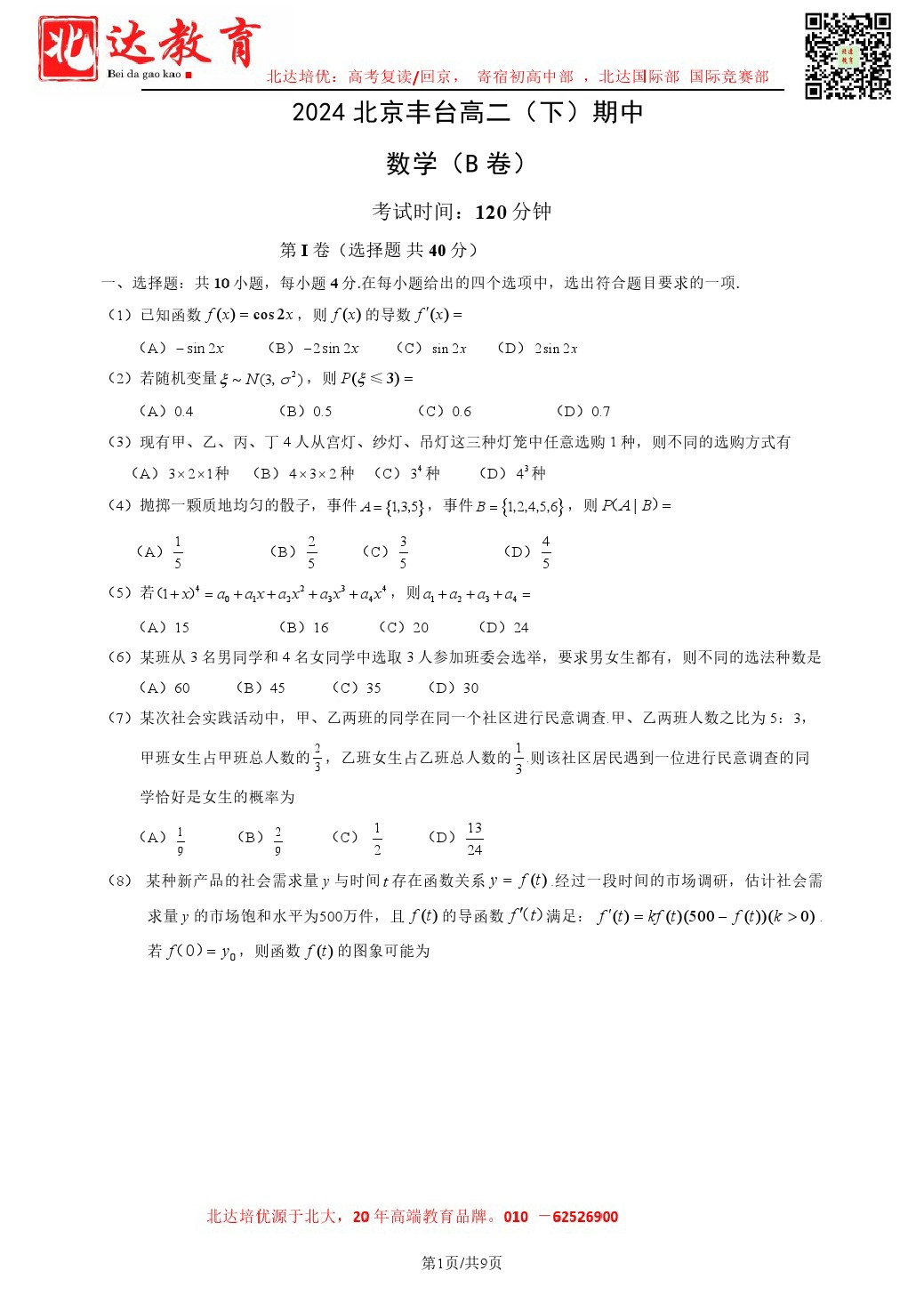 2024年北京丰台高二(下)期中开考,admw360教育整理了2024北京丰台高二(下)期中数学(B卷)试卷含答案,分享给同学们。 导读推荐:2024北京各区高二(下)期中试题及答案汇总 试…