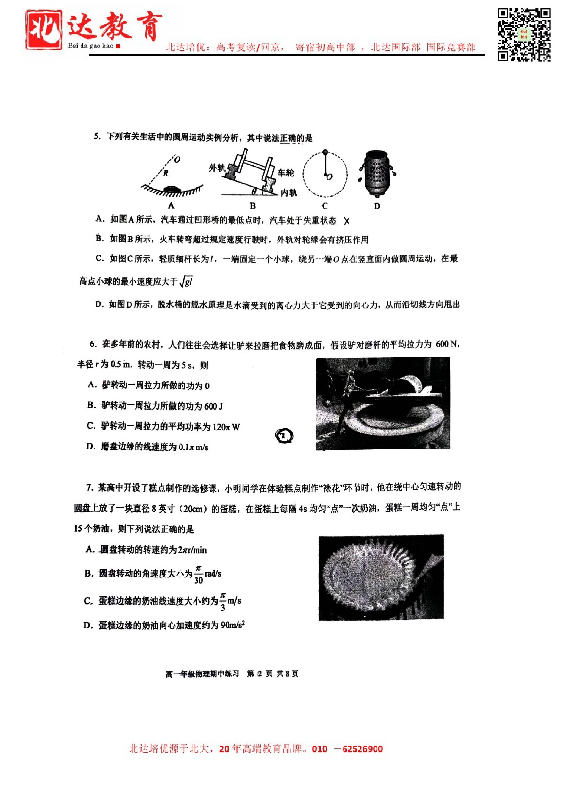 2024年北京育英学校高一(下)期中开考,admw360教研组整理了2024北京育英学校高一(下)期中物理(1-6班)试卷,分享给同学们。