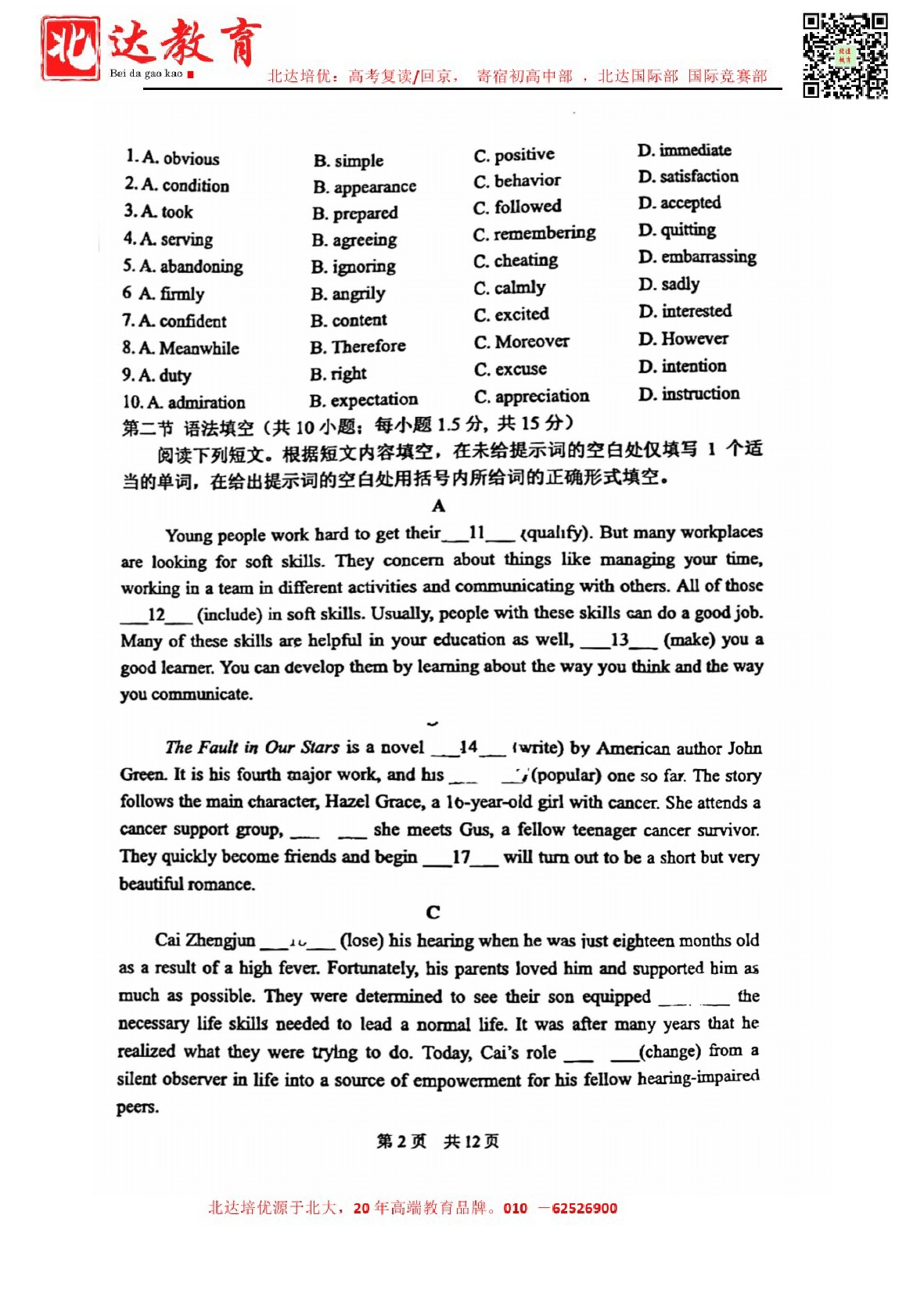 2024北京一零一中高二(下)期中英语试卷含答案 高考资料 2024年5月13日 17:14 阅读(519) 评论关闭 2024年北京一零一中高二(下)期中开考,admw360教育整理了2024北京一零一中高二(下)期中英语试卷含答案,分享给同学们。 导读推荐:2024北京各区高二(下)期中试题及答案汇总 试… 2024年北京一零一中高二(下)期中开考,admw360教育整理了2024北京一零一中高二(下)期中英语试卷含答案,分享给同学们。 导读推荐:2024北京各区高二(下)期中试题及答案汇总 试题预览: 试题下载:http://365.beijing518.com/9880.html 标签:2024北京高二期中
