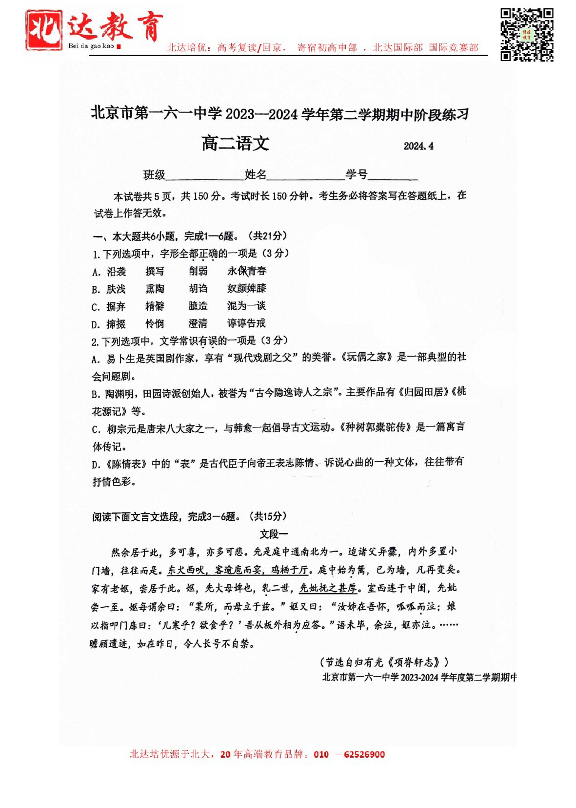 2024北京一六一中高二(下)期中语文试卷含答案 高考资料 2024年5月13日 17:16 阅读(371) 评论关闭 2024年北京一六一中高二(下)期中开考,admw360教育整理了22024北京一六一中高二(下)期中语文试卷含答案,分享给同学们。 导读推荐:2024北京各区高二(下)期中试题及答案汇总 … 2024年北京一六一中高二(下)期中开考,admw360教育整理了22024北京一六一中高二(下)期中语文试卷含答案,分享给同学们。 导读推荐:2024北京各区高二(下)期中试题及答案汇总 试题预览: 试题下载:http://365.beijing518.com/9880.html 标签:2024北京高二期中