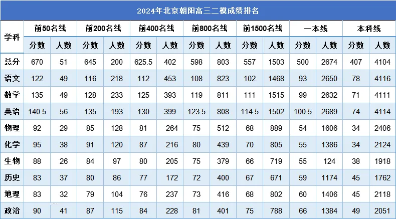 2024北京朝阳区高三二模成绩排名&赋分表出炉~一本线500,本科线407!以下是admw360高考教研组整理的内容详情,分享给大家:
