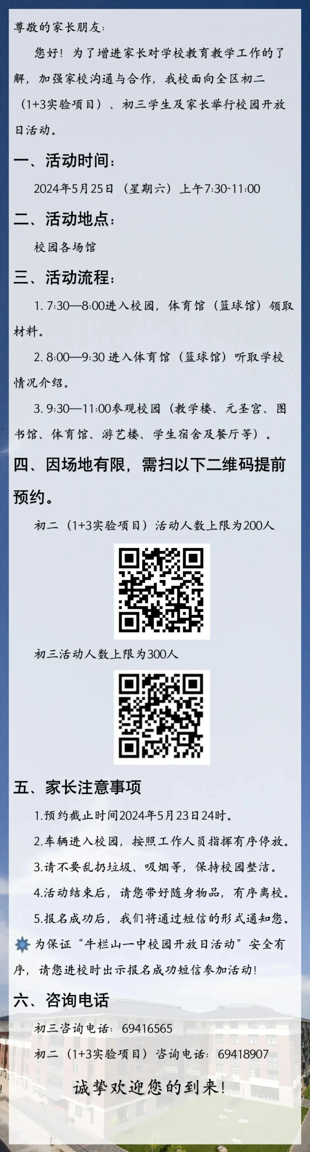 特别声明:本次活动仅面向初三学生及家长。不安排任何与招生相关的面试或测试,不涉及任何与义务教育阶段入学相关的内容和活动,不接收任何简历。