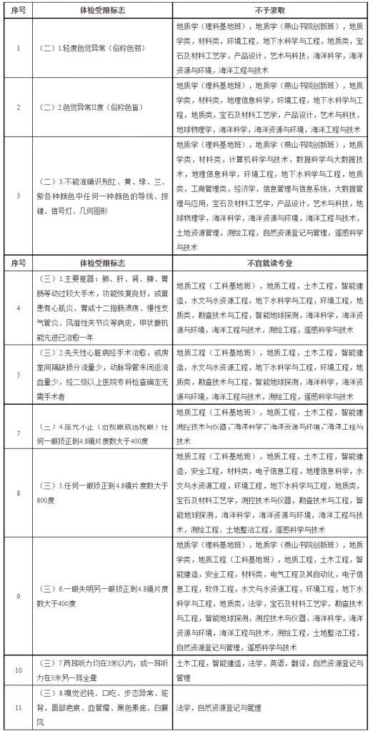 中国地质大学(北京)2024年考生体检要求