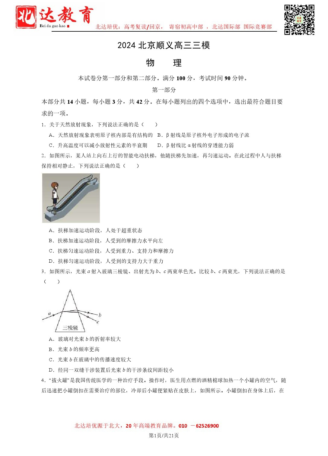 2024年北京各区高三三模陆续进行中,admw360教研组收集并整理了2024北京顺义高三三模物理试卷含答案,分享给同学们。