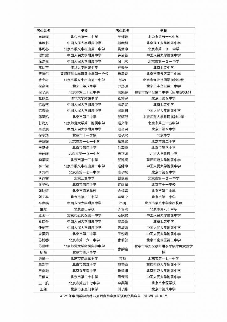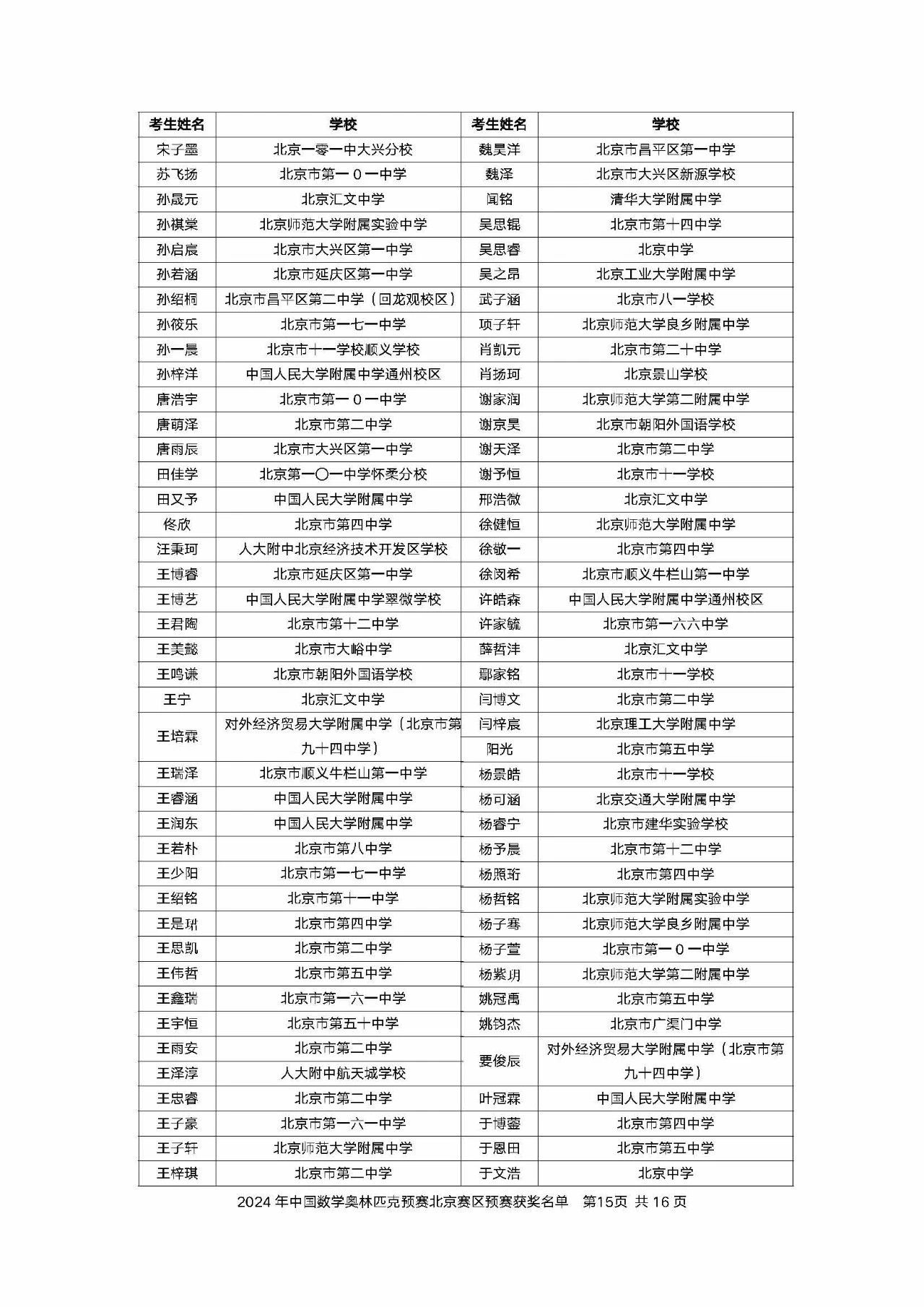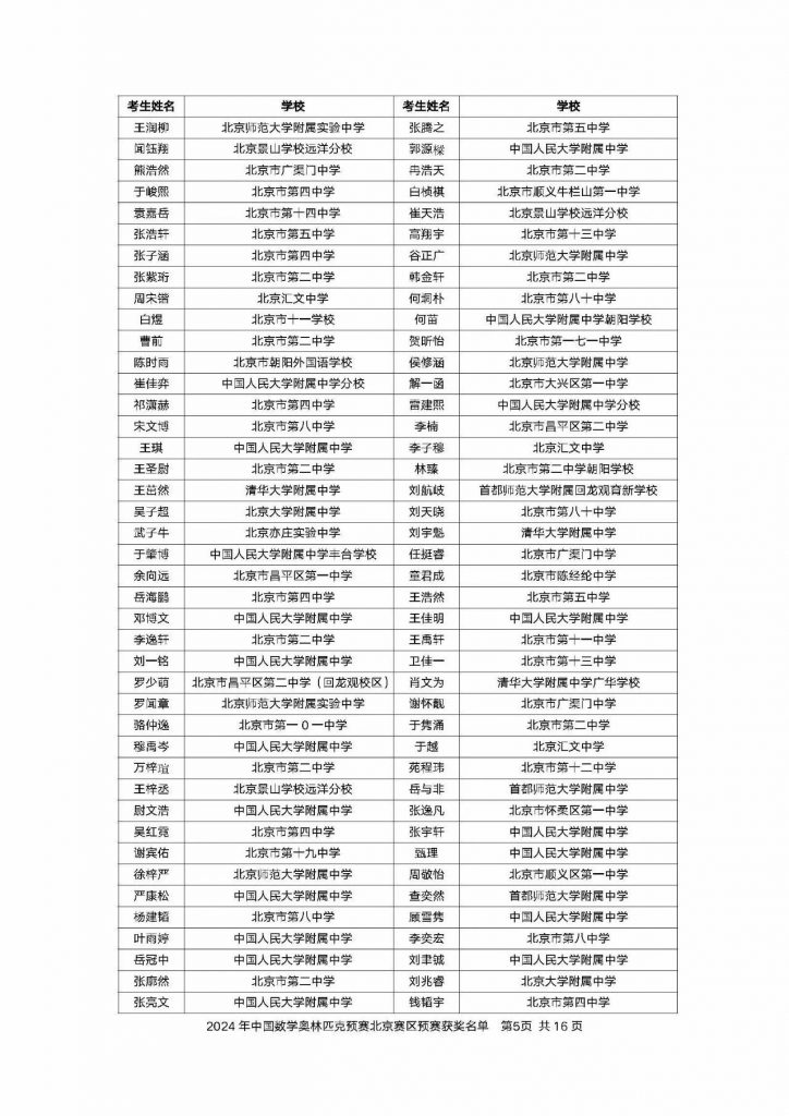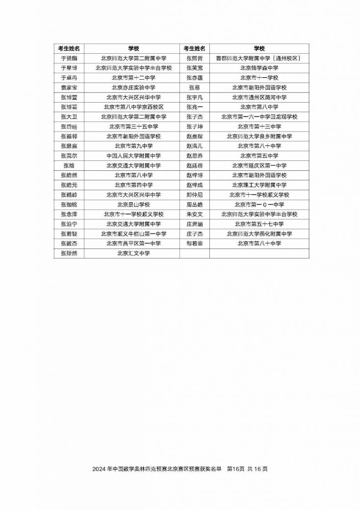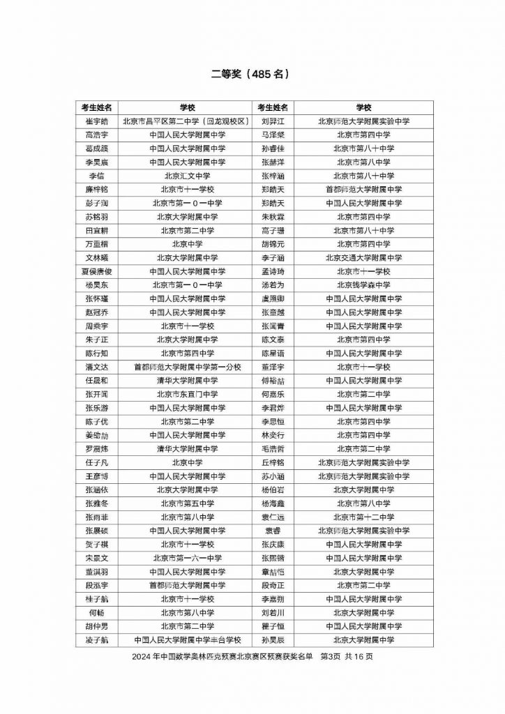 2024年中国数学奥林匹克预赛北京赛区预赛获奖名单已出炉!142人获得一等奖,485人获得二等奖,614人获得三等奖。admw360教研组整理了具体名单,一起来看~