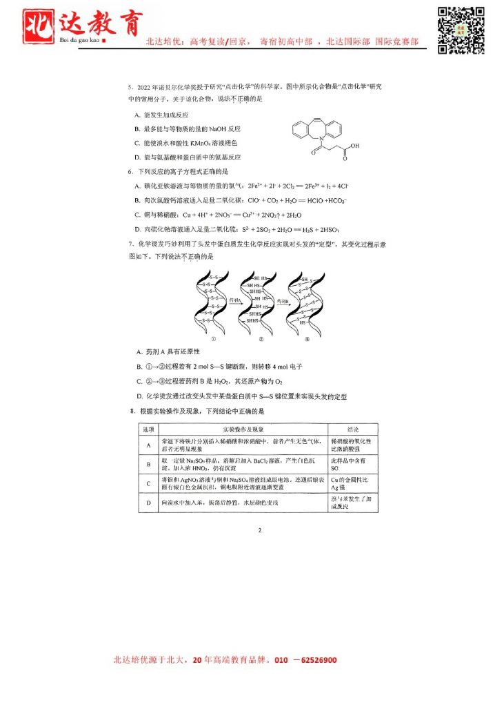 2024年北京各区高三三模陆续进行中,admw360教研组收集并整理了2024北京二中高三三模化学试卷含答案,分享给同学们。