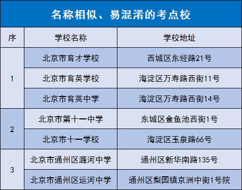 有些考点校的名称很相似,容易混淆。