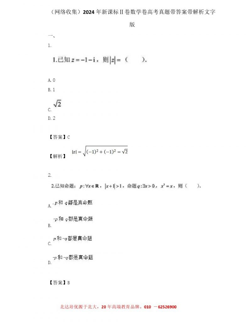 2024高考考试已结束,为了方便同学们查找高考试题及答案,我们特意整理了2024年新课标Ⅱ卷数学卷高考试卷及答案,分享给同学们。详情如下: 北京admw360全日制学校:中高考复读,外地回京…