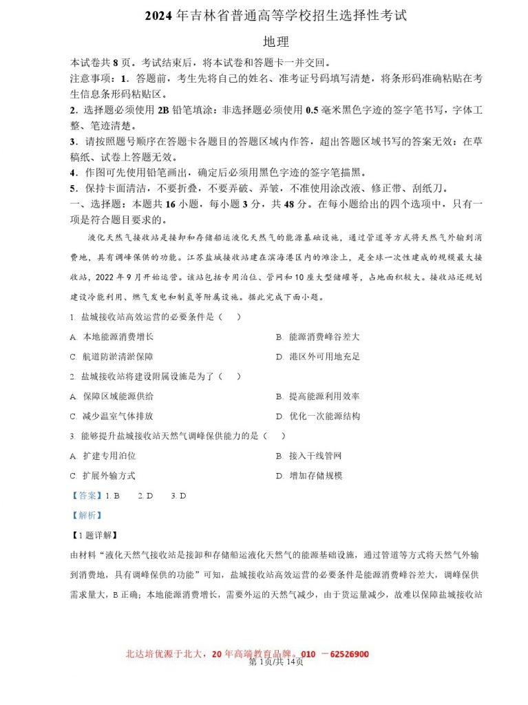 2024高考考试已结束,为了方便同学们查找高考试题及答案,我们特意整理了2024黑吉辽高考地理试题及答案,分享给同学们。详情如下: