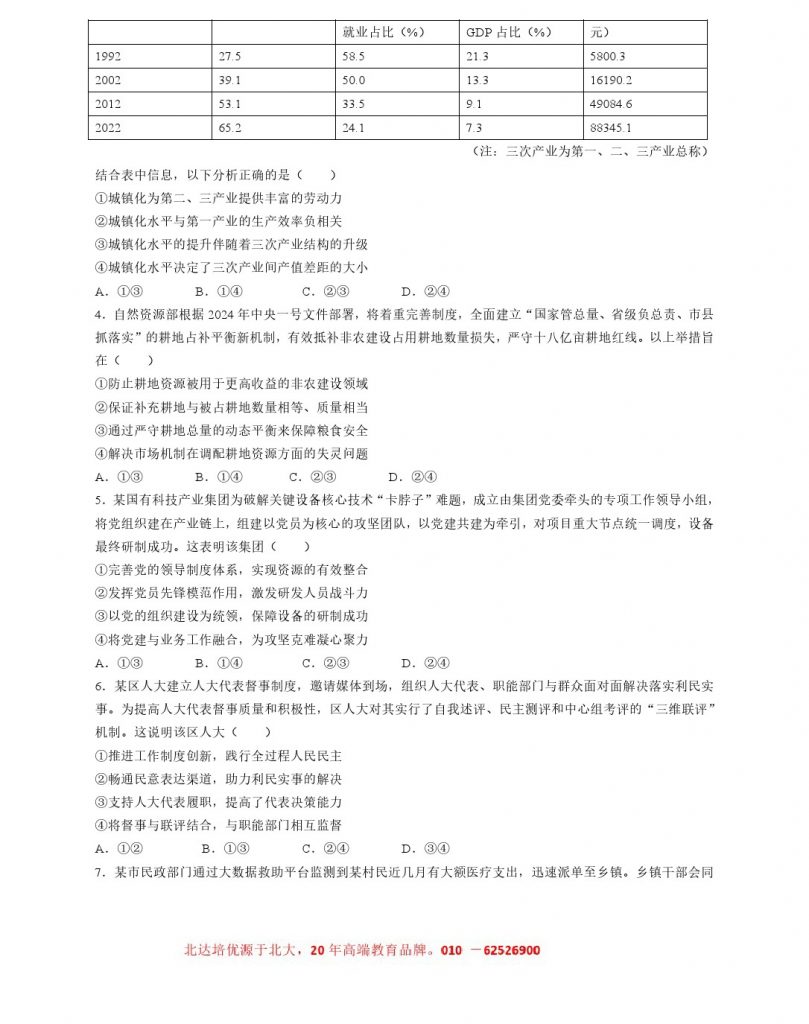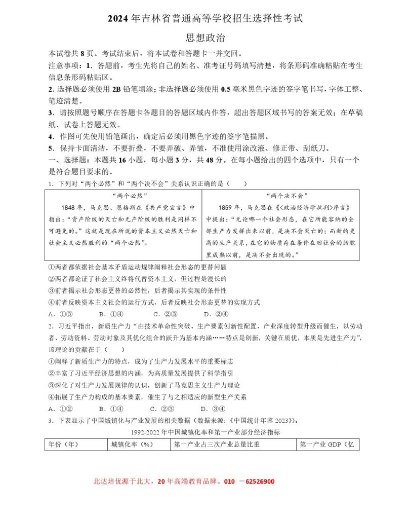 2024黑吉辽高考政治试题