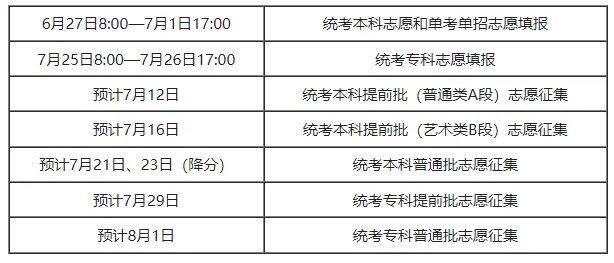 预计7月16-18日左右公布本科提前批录取投档线(最低分数),预计7月17-19日左右公布本科普通批录取投档线。
