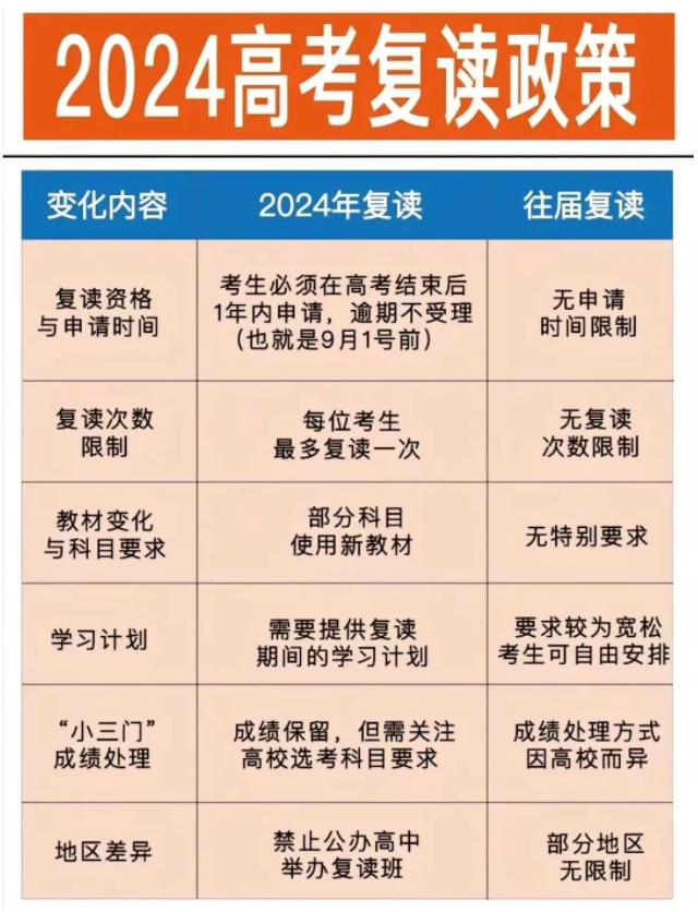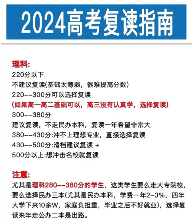 2024高考复读政策有哪些变动?什么样的分数适合复读?三张图全告诉你,建议收藏。