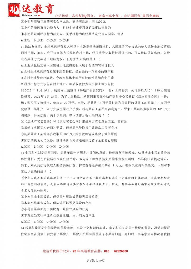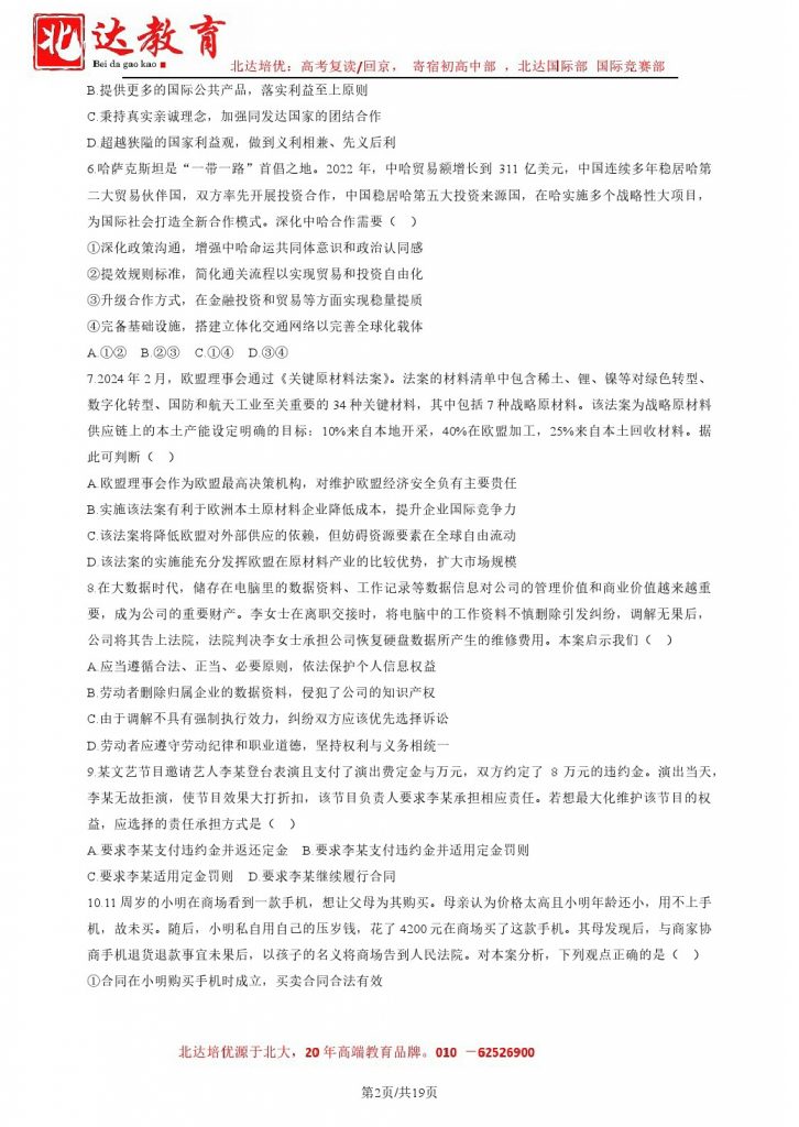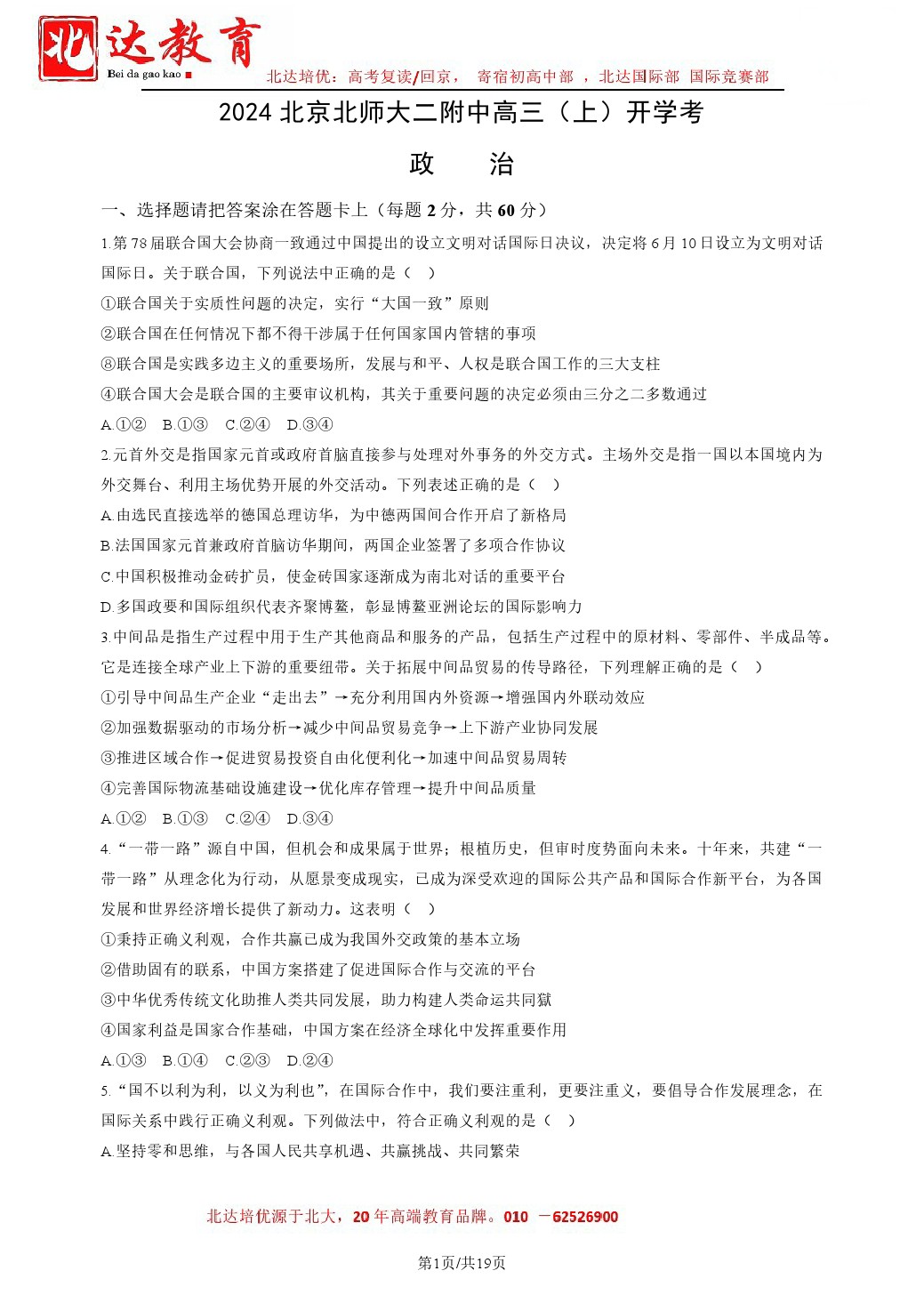 北京各中学新高三学生陆续进行开学考试,为此,本文特意整理了2024北京北师大二附中高三(上)开学考政治试题及答案,同学们可以点击链接下载PDF文件。