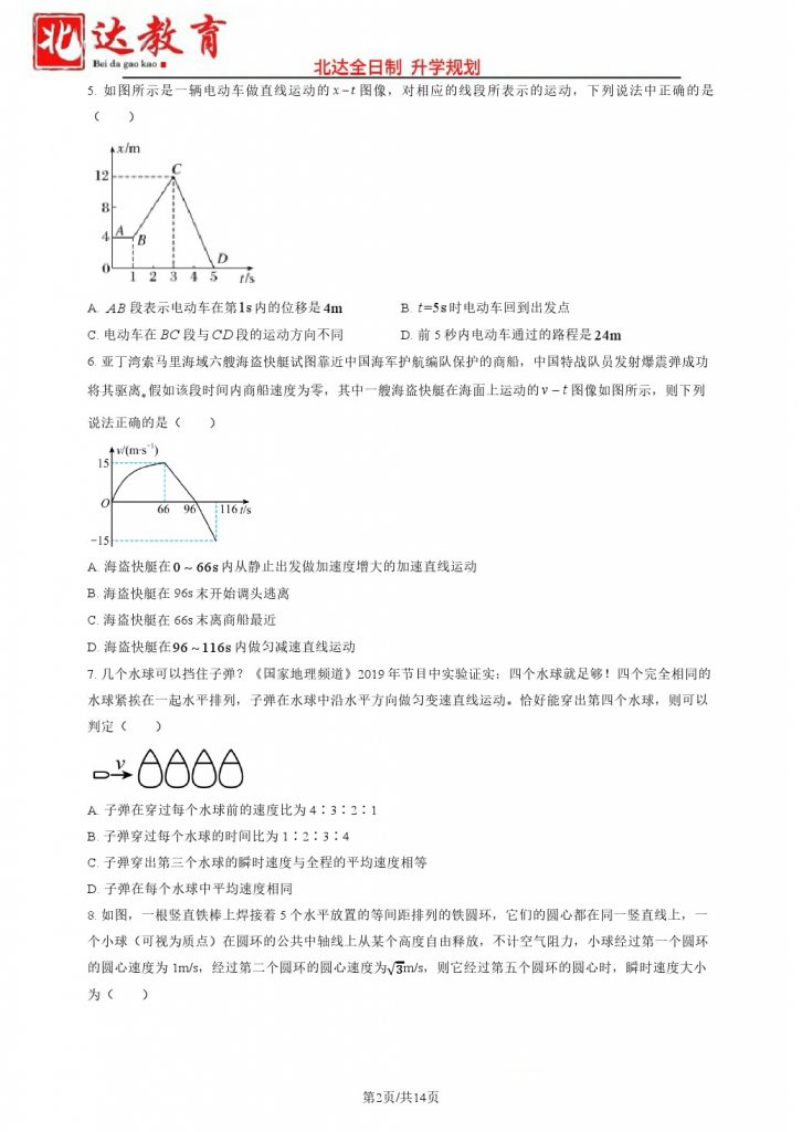 北京2024.10各个学校月考正在陆续进行中,为方便大家对答案、下载练习等小编给大家搜集了2024北京北师大附中高一10月月考物理试题及答案,需要的小伙伴赶紧下载练习起来吧: