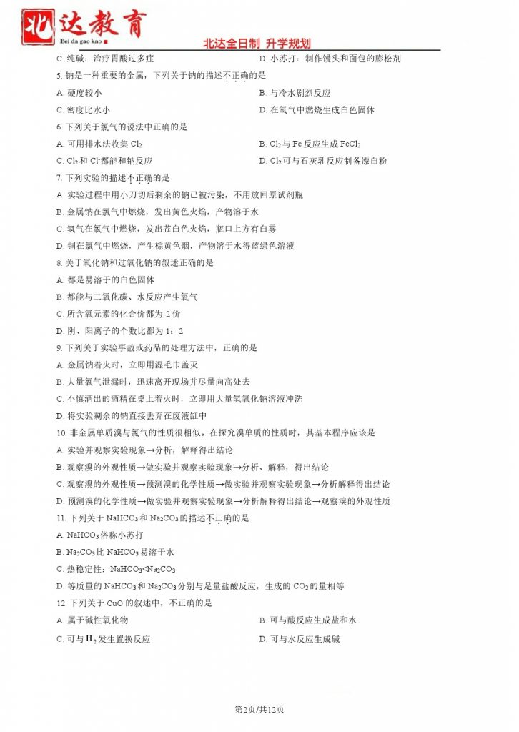 北京2024.10各个学校月考正在陆续进行中,为方便大家对答案、下载练习等小编给大家搜集了2024北京十中高一10月月考化学试题及答案,需要的小伙伴赶紧下载练习起来吧: 试题预览:…