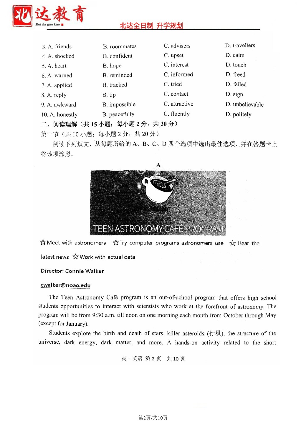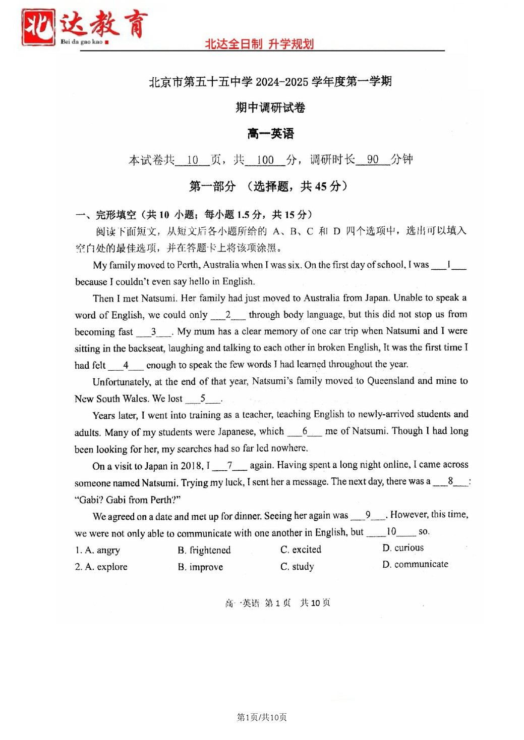 北京2024各个学校期中考正在陆续进行中,为方便大家对答案、下载练习等小编给大家搜集了2024北京五十五中高一(上)期中英语试题及答案,需要的小伙伴赶紧下载练习起来吧: