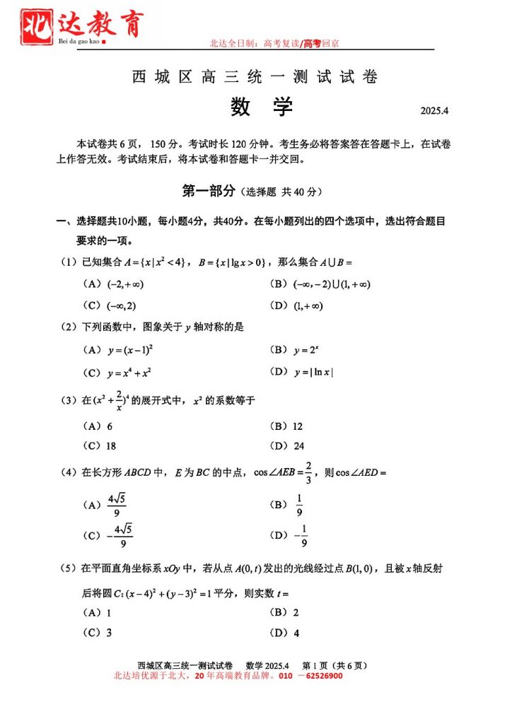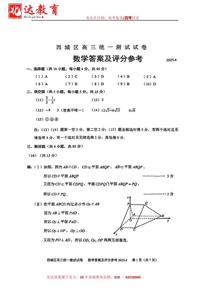 北京2025高三一模正在陆续进行中,为方便大家对答案、下载练习等小编给大家搜集了2025北京西城区高三一模数学试卷及答案,需要的小伙伴赶紧下载练习起来吧:
