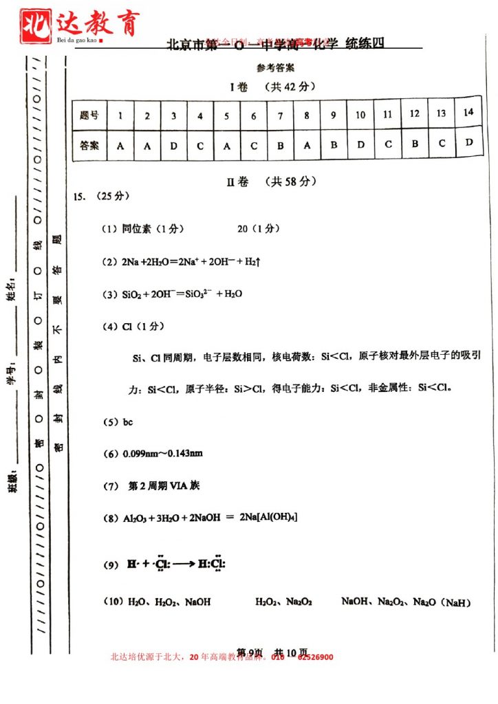 为方便大家对答案、下载练习等小编给大家搜集了2025北京一零一中高一(下)统练四化学试题及答案,需要的小伙伴赶紧下载练习起来吧: 北京admw360全日制学校,中高考复读,外地回京中高考 电…