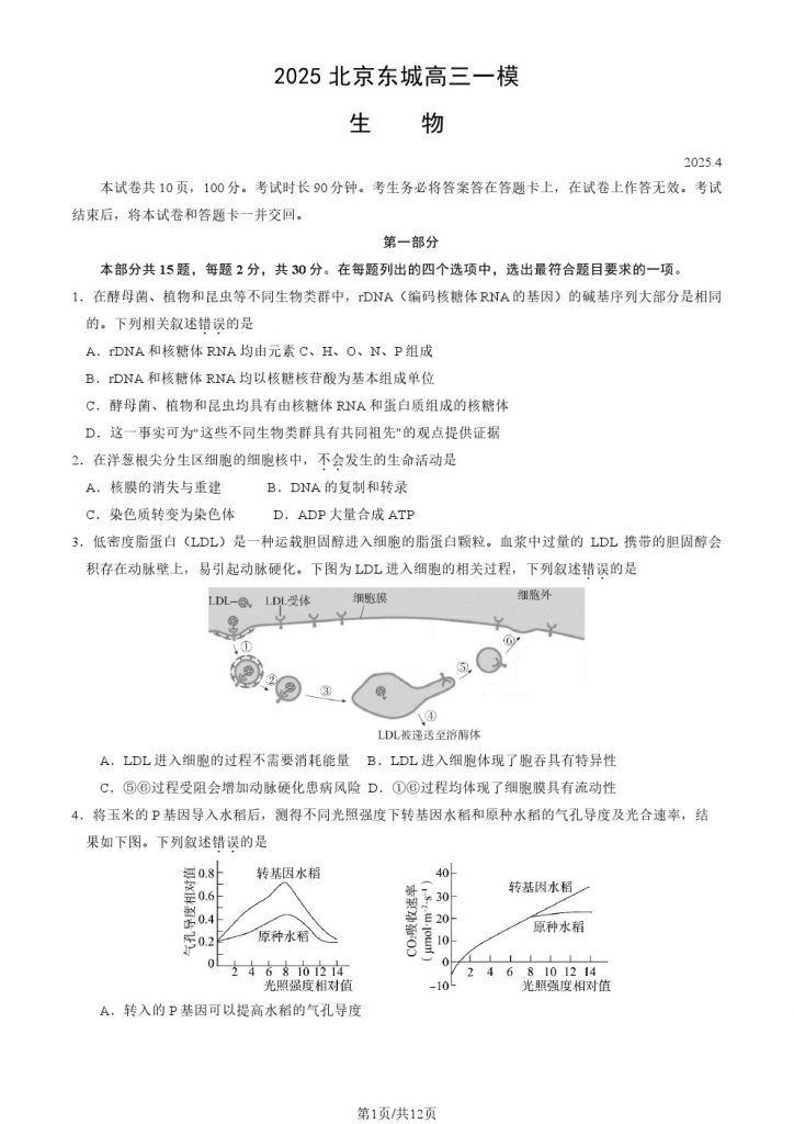 北京2025高三一模正在陆续进行中,为方便大家对答案、下载练习等小编给大家搜集了2025北京东城区高三一模生物试题及答案,需要的小伙伴赶紧下载练习起来吧: