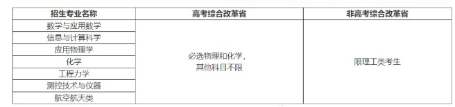 我校围绕数学与应用数学、信息与计算科学、应用物理学、化学、工程力学、测控技术与仪器、航空航天类等专业设置2025年强基计划招生专业及对应培养方向。符合报名条件的考生在各省(区、市)可填报的招生专业和招生计划以我校强基计划报名系统公布为准。