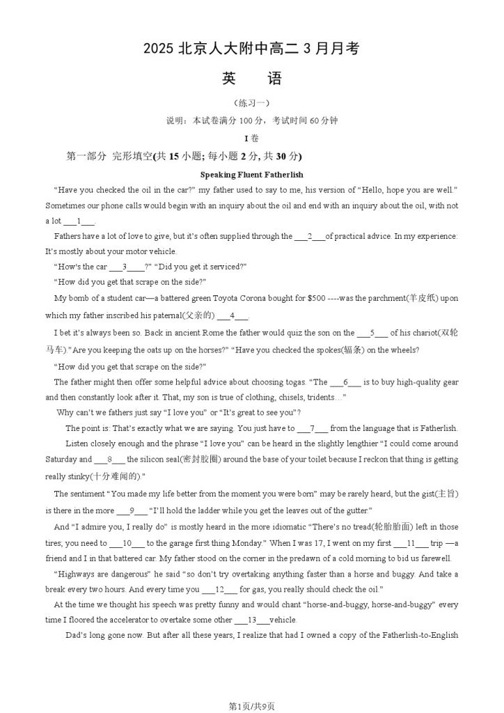 为方便大家对答案、下载练习等小编给大家搜集了人大附中2025高二3月考英语试题及答案,需要的小伙伴赶紧下载练习起来吧: