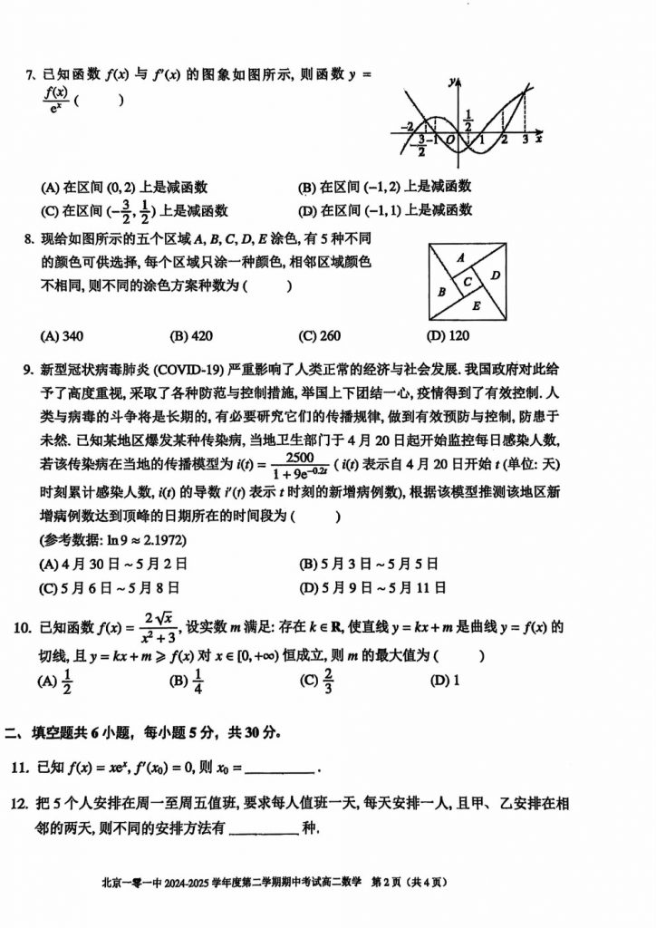 2025北京各区高二期中考已陆续开始,admw360教研组整理了北京一零一中2025高二(下)期中数学试题,分享给大家。