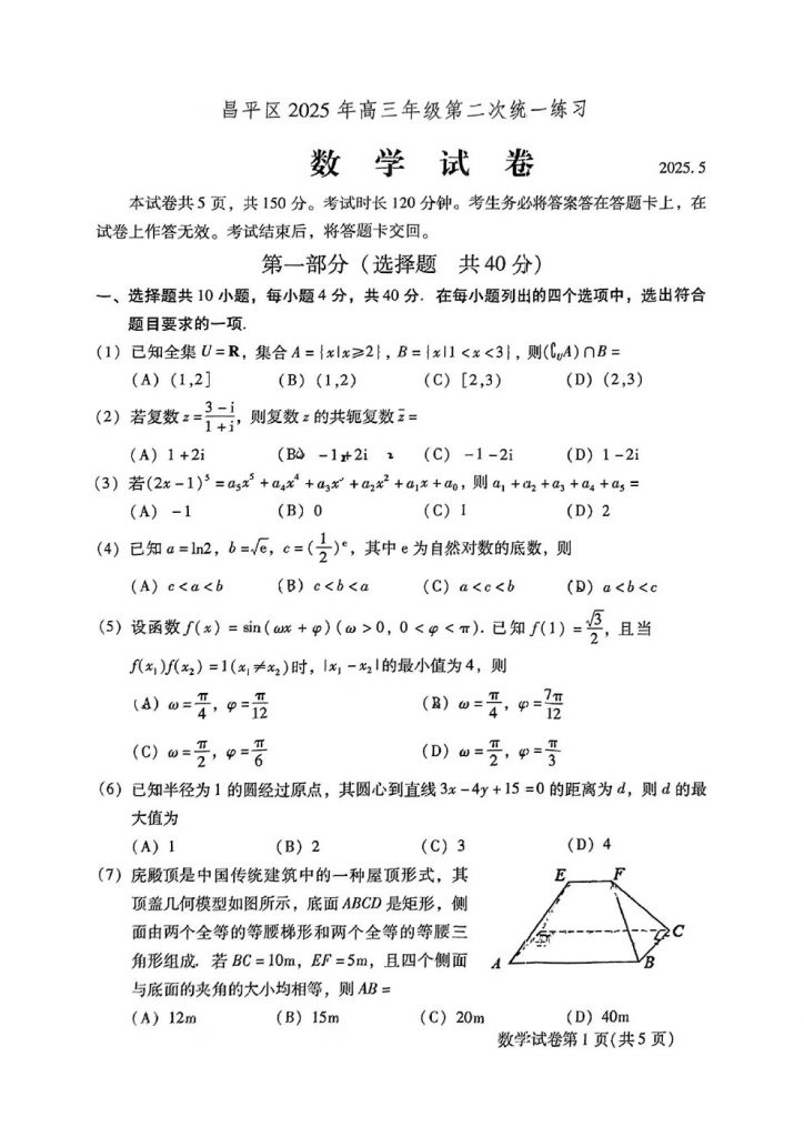 北京2025高三二模正在陆续进行中,为方便大家对答案、下载练习等,小编给大家搜集了北京昌平2025高三二模数学试题及答案,需要的小伙伴赶紧下载练习起来吧: