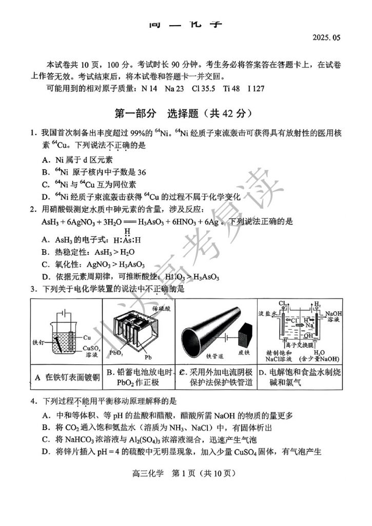 北京2025高三二模正在陆续进行中,为方便大家对答案、下载练习等,小编给大家搜集了2025北京丰台区高三二模化学试题及答案,需要的小伙伴赶紧下载练习起来吧: