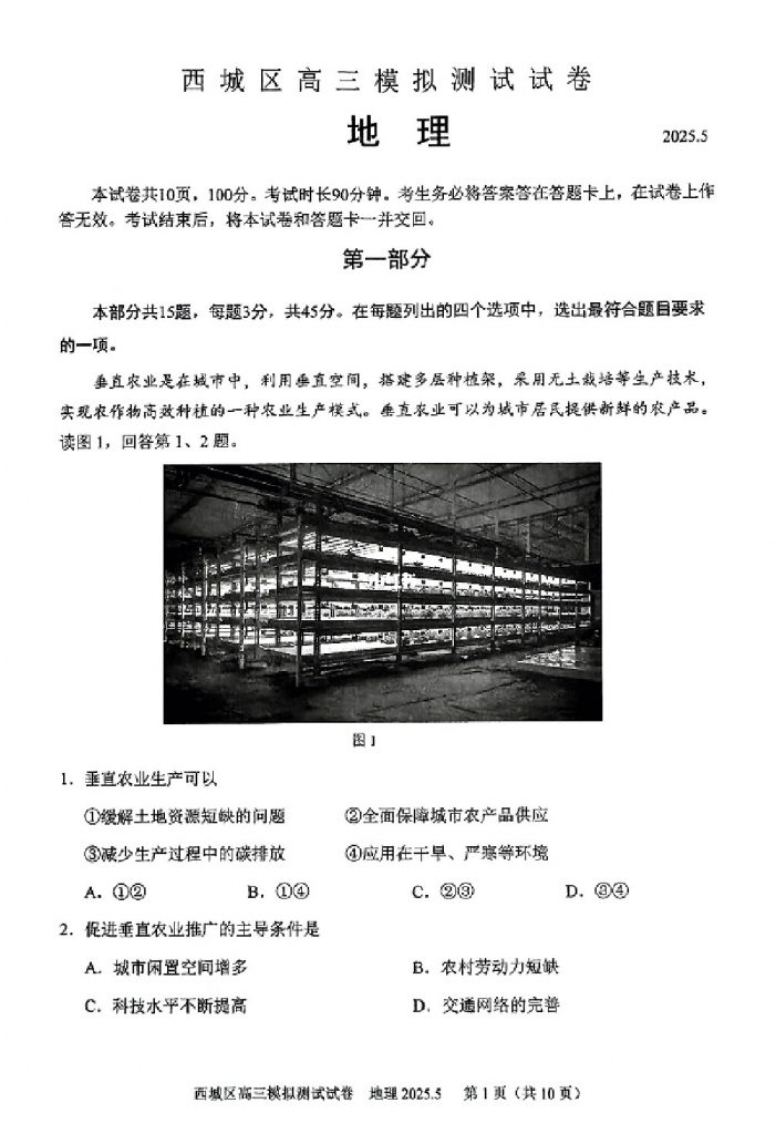 北京2025高三二模正在陆续进行中,为方便大家对答案、下载练习等,小编给大家搜集了北京西城区2025高三二模地理试题及答案,需要的小伙伴赶紧下载练习起来吧: