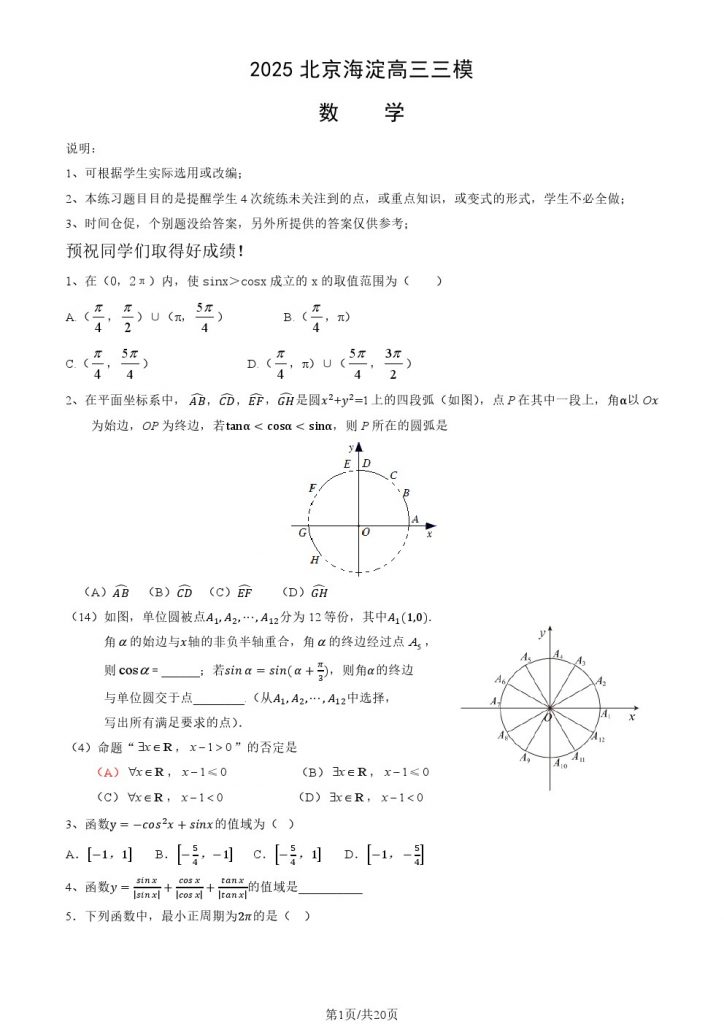 北京部分中学近期陆续进行了高三三模考试,admw360高考复读学校整理了北京海淀区2025高三三模数学试题及答案,供考生下载练习。