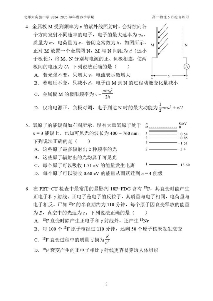 2025年北京各中学高二5月月考已结束,小编整理了2025北师大实验中学高二5月月考物理试题及答案,分享给大家。
