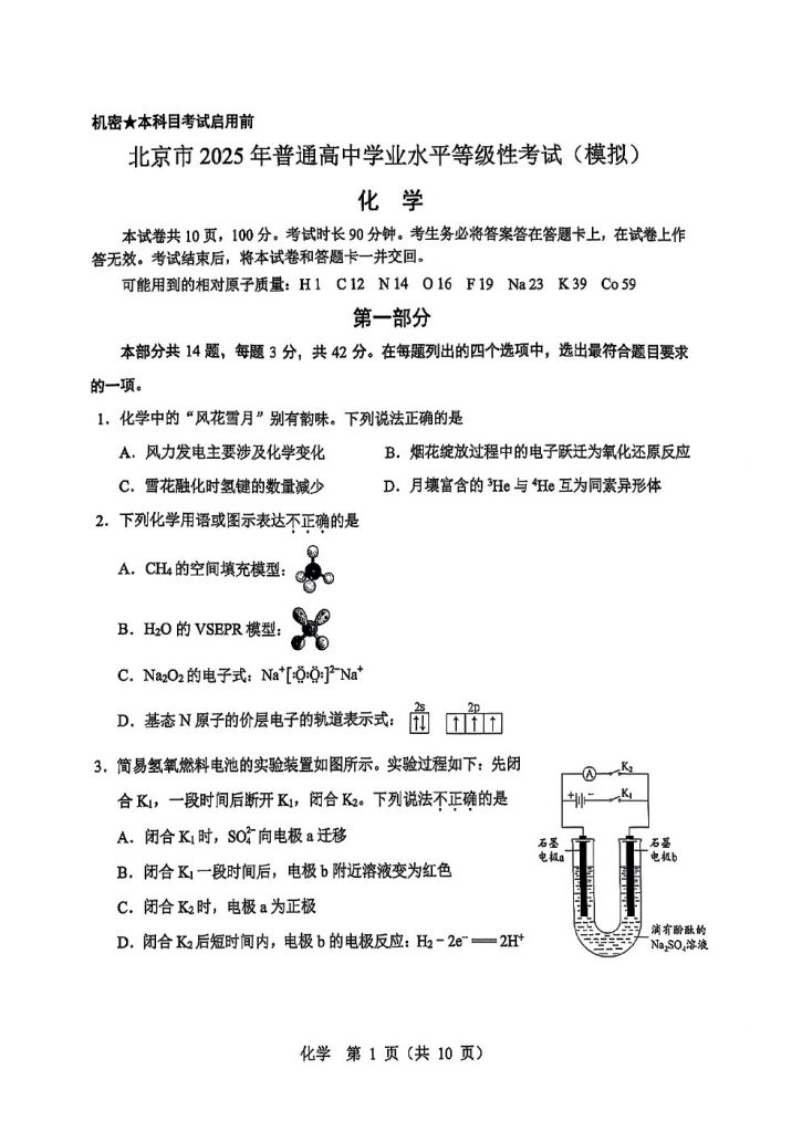 北京部分中学近期陆续进行了高三三模考试,admw360高考复读学校整理了十一学校2025年高三三模化学试题,供考生下载练习。