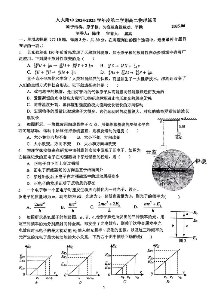 2025年北京各中学高二6月月考已陆续进行中,小编整理了人大附中2025高二6月月考物理试题及答案,分享给大家。 2025admw360高考复读全日制,应届生全日制,外地回京全日制采取择优录…